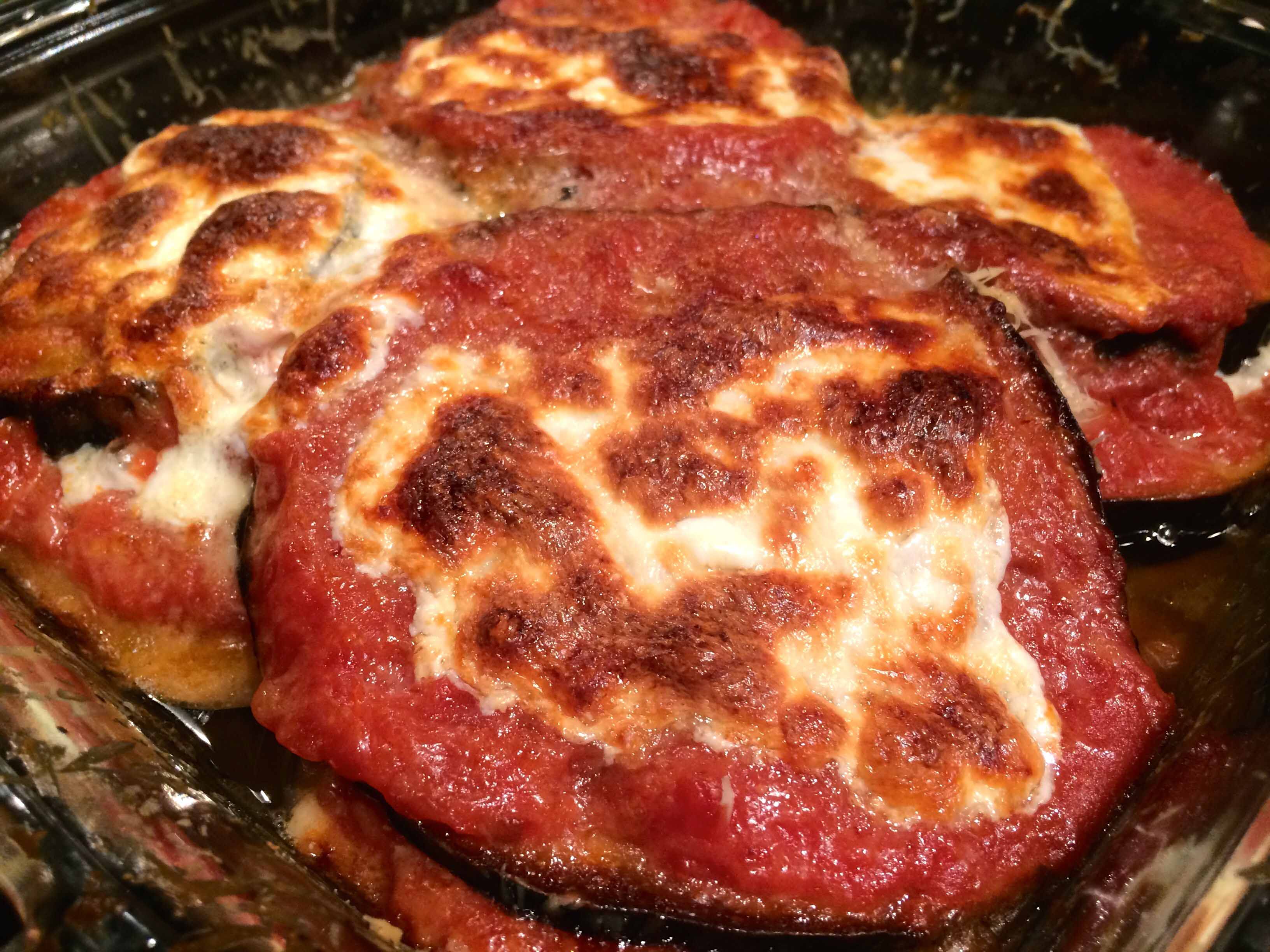 Cook for about 35 minutes. The eggplant should be bubbling and the mozzarella nicely browned.