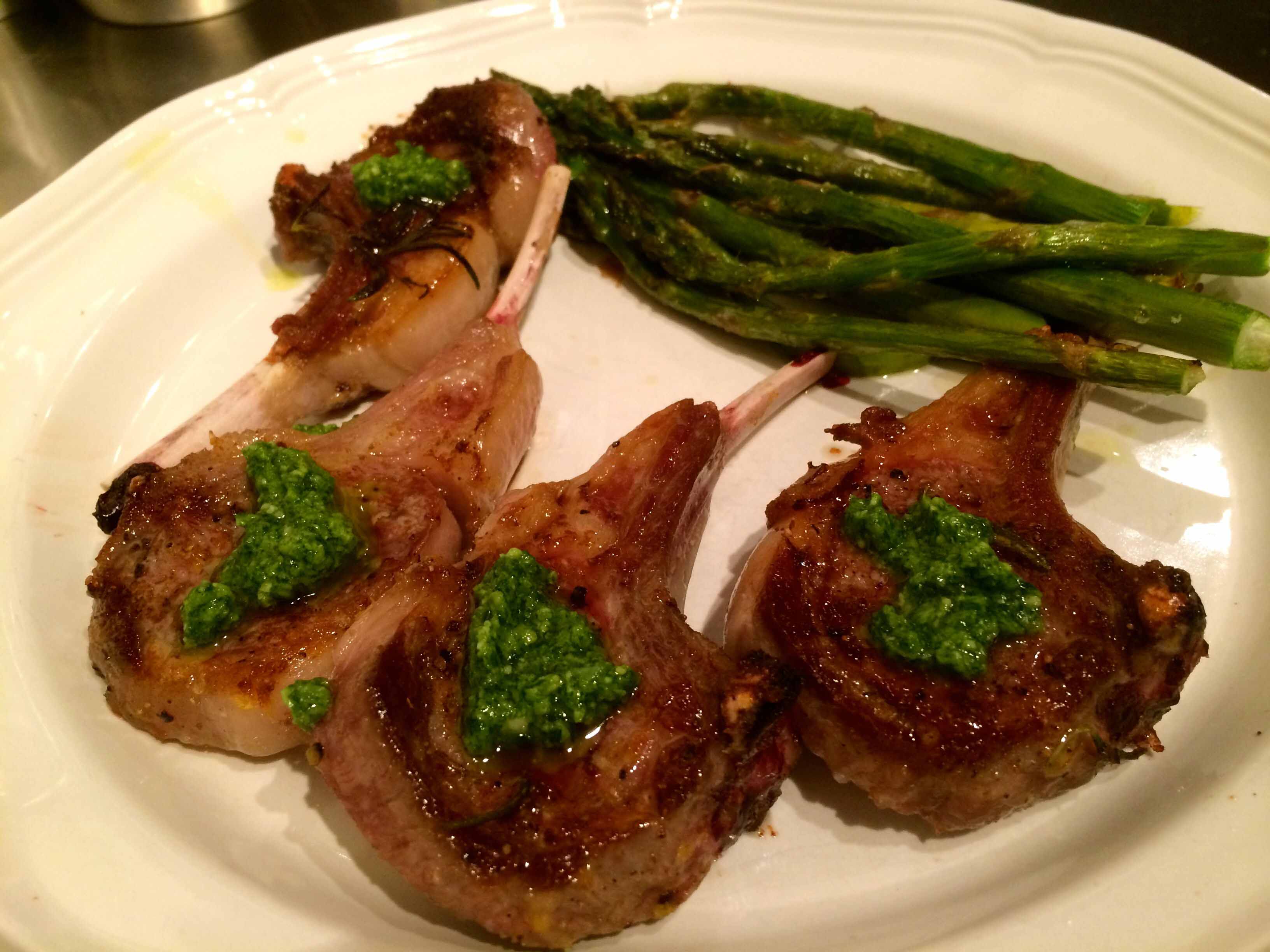 This is also a great dish for informal entertaining as it takes only a few minutes a side to grill the chops. In keeping with the “finger-food” theme, I generally serve the lamb chops with roasted asparagus.