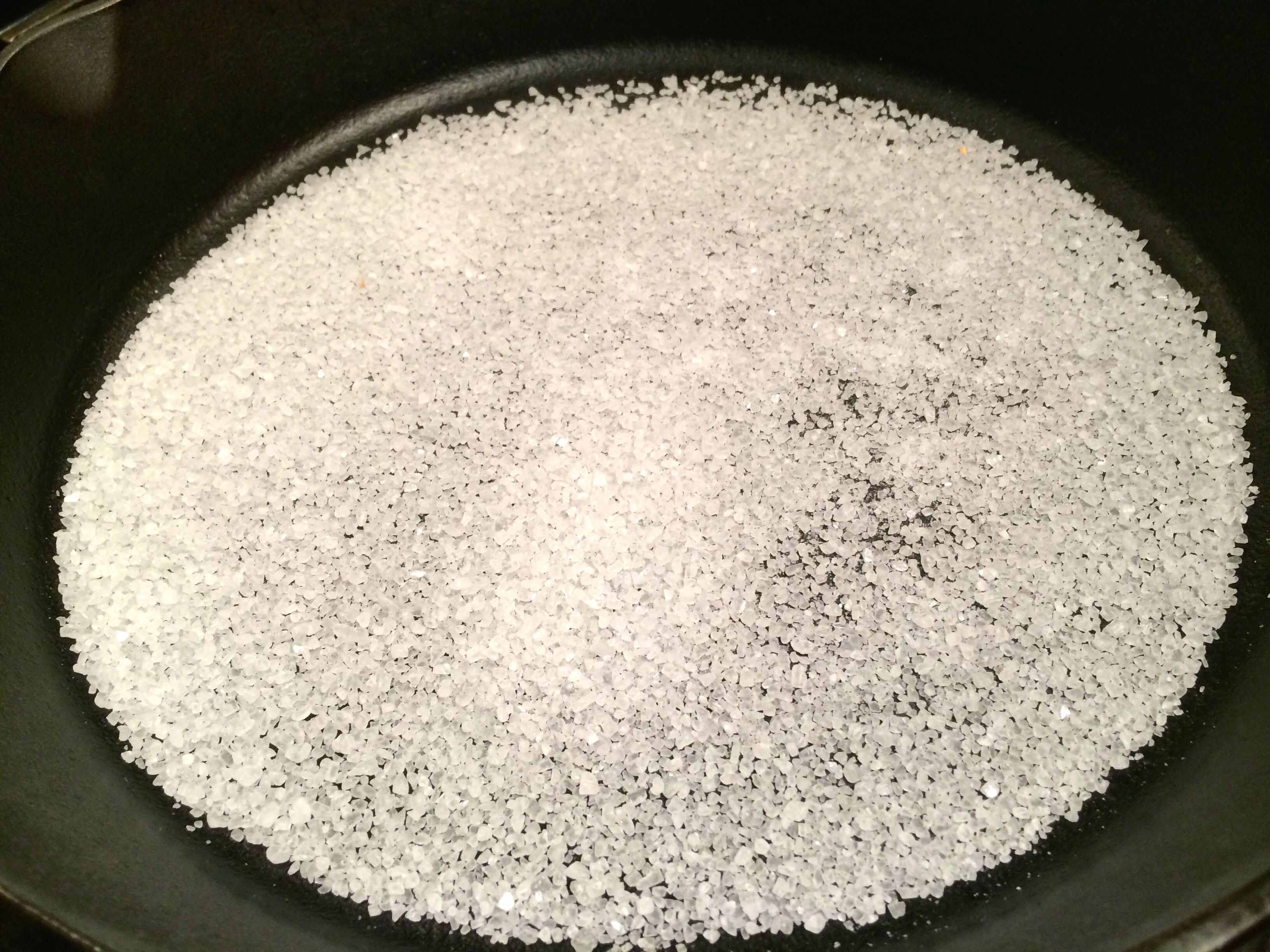 2 tablespoons large-crystal sea salt (You may need more depending on the size of your skillet.)