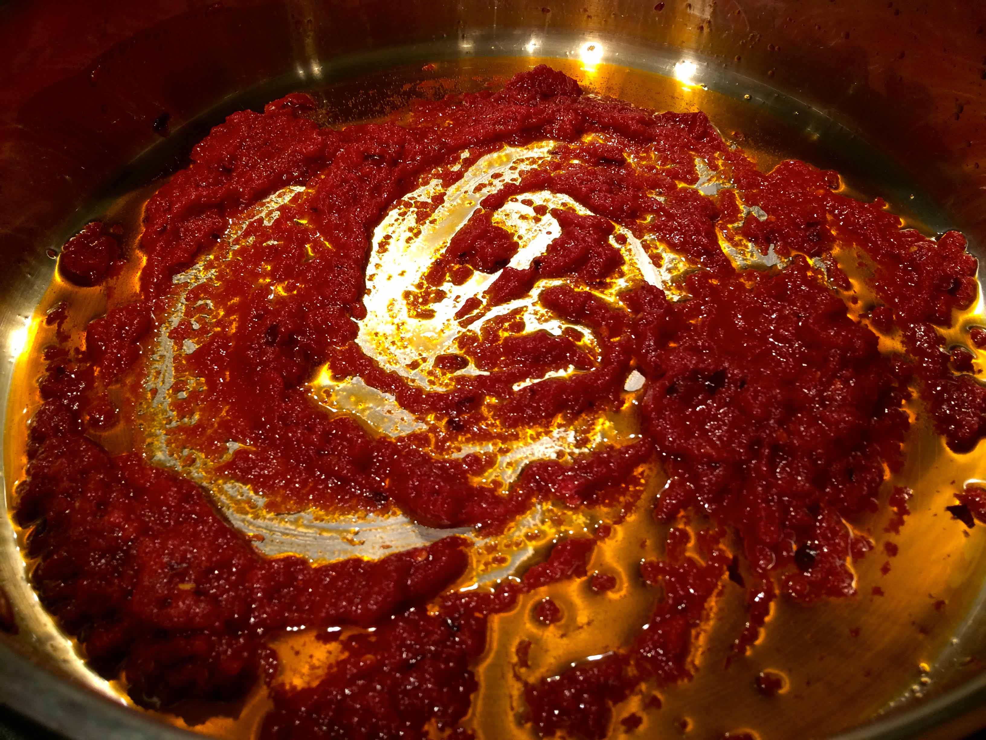 1. Toast the tomato paste and peperoncini: