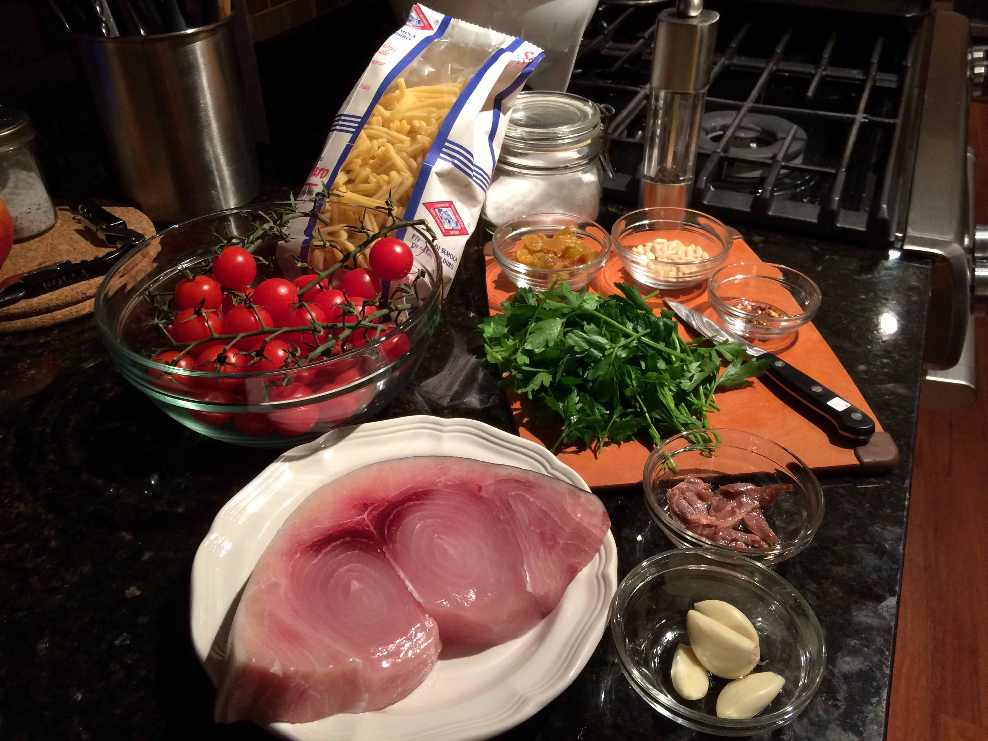 Meanwhile chop the parsley and garlic, and combine with the grated lemon zest.