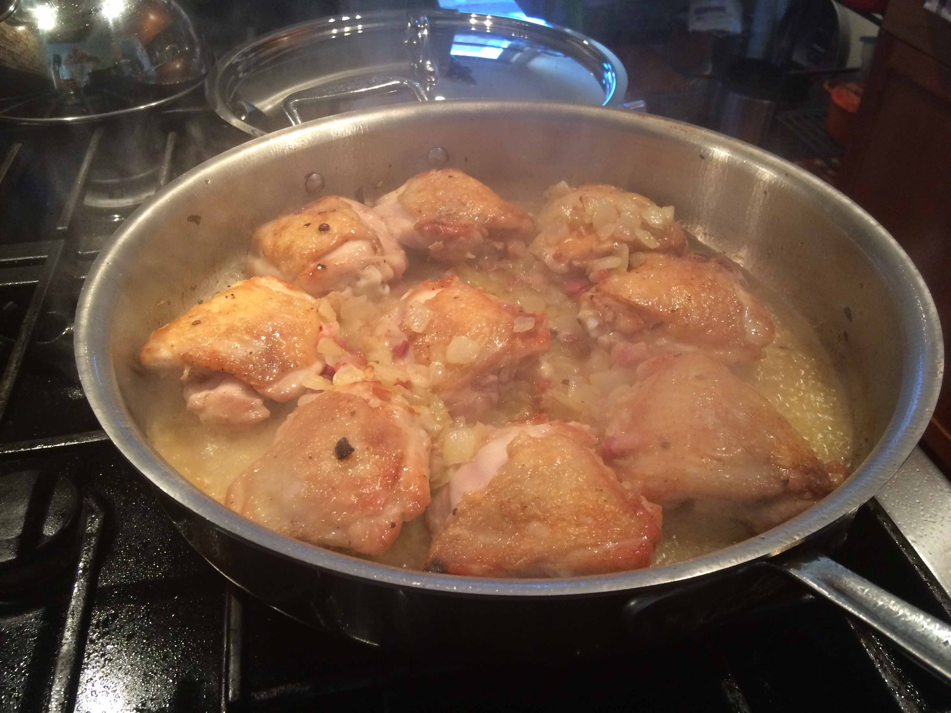 3. Return the pan to the stove and distribute grapes and onion over and around sausages.