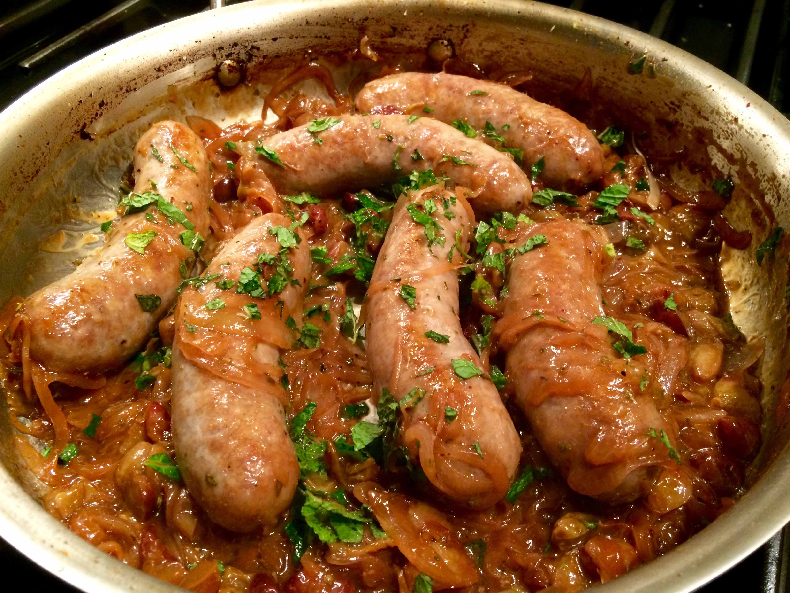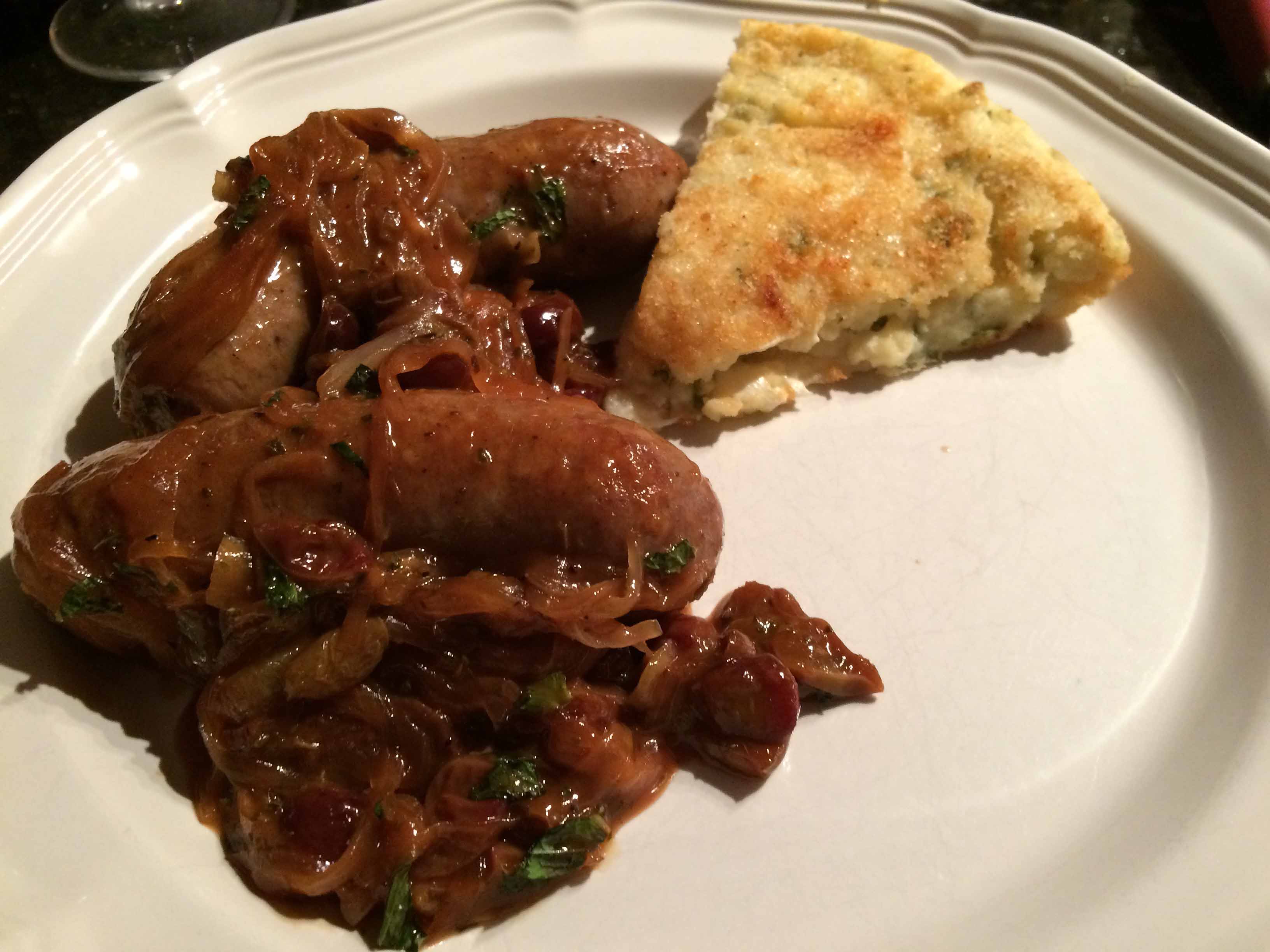 I served the sausages with my aunt’s Italian potato pie, but they would also go well with polenta.