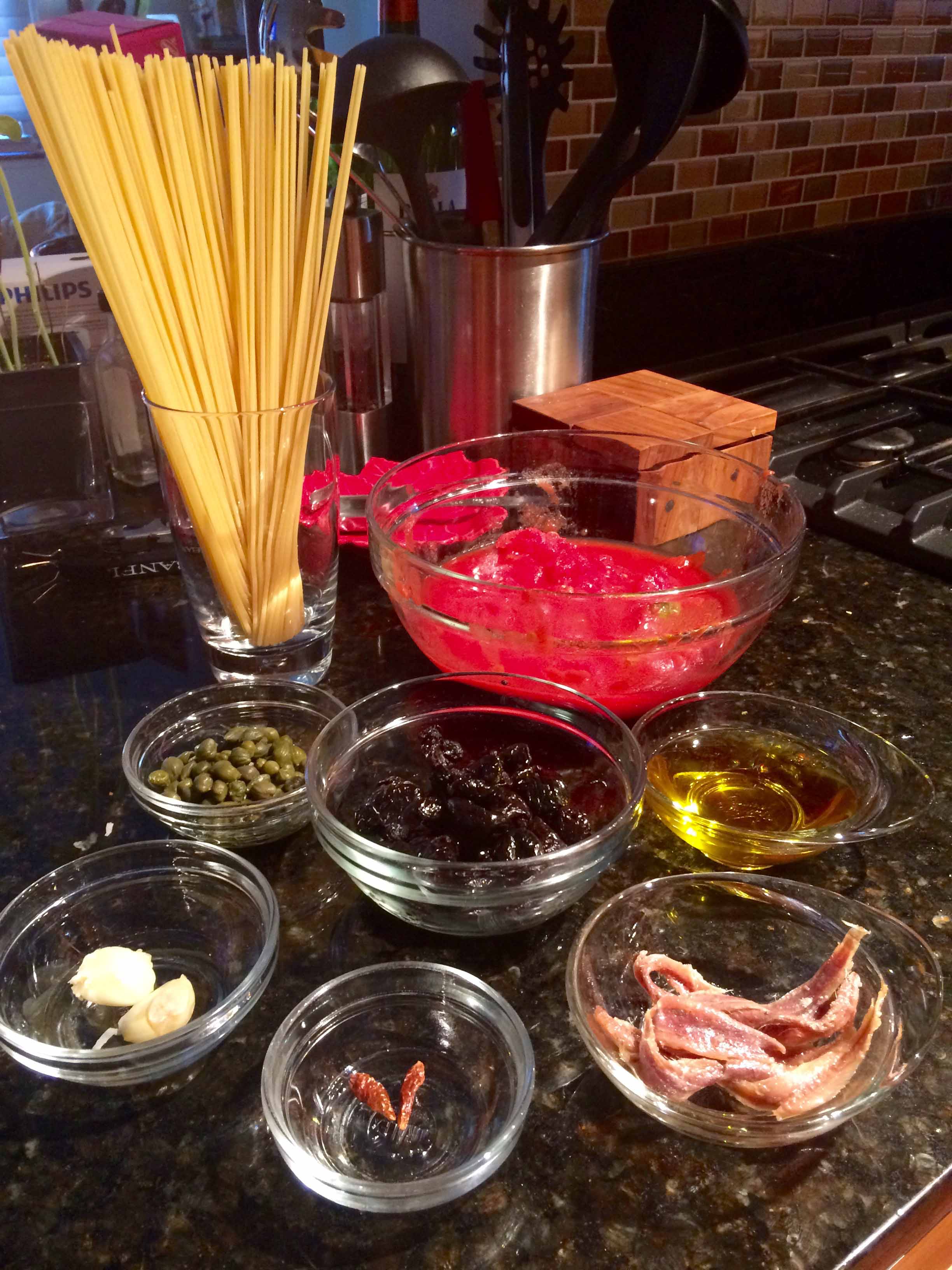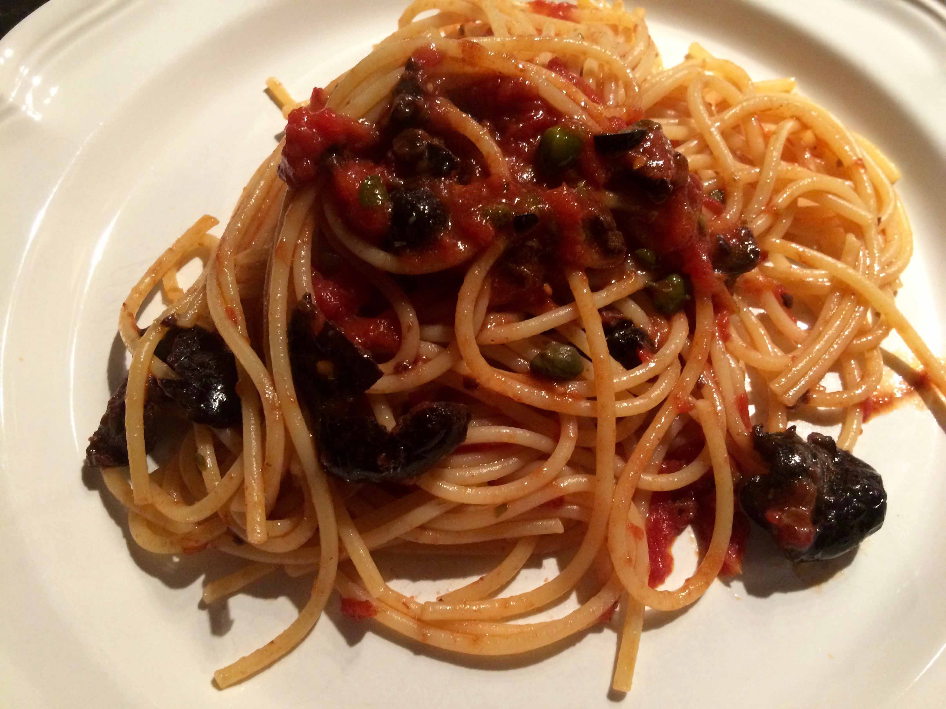 Spaghetti Puttanesca (Adapted from The Seasons of the Italian Kitchen by Diane Darrow and Tom Maresca)