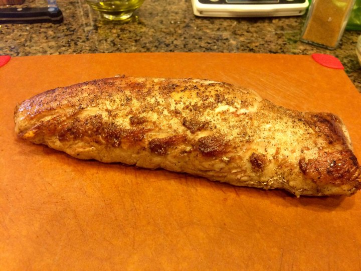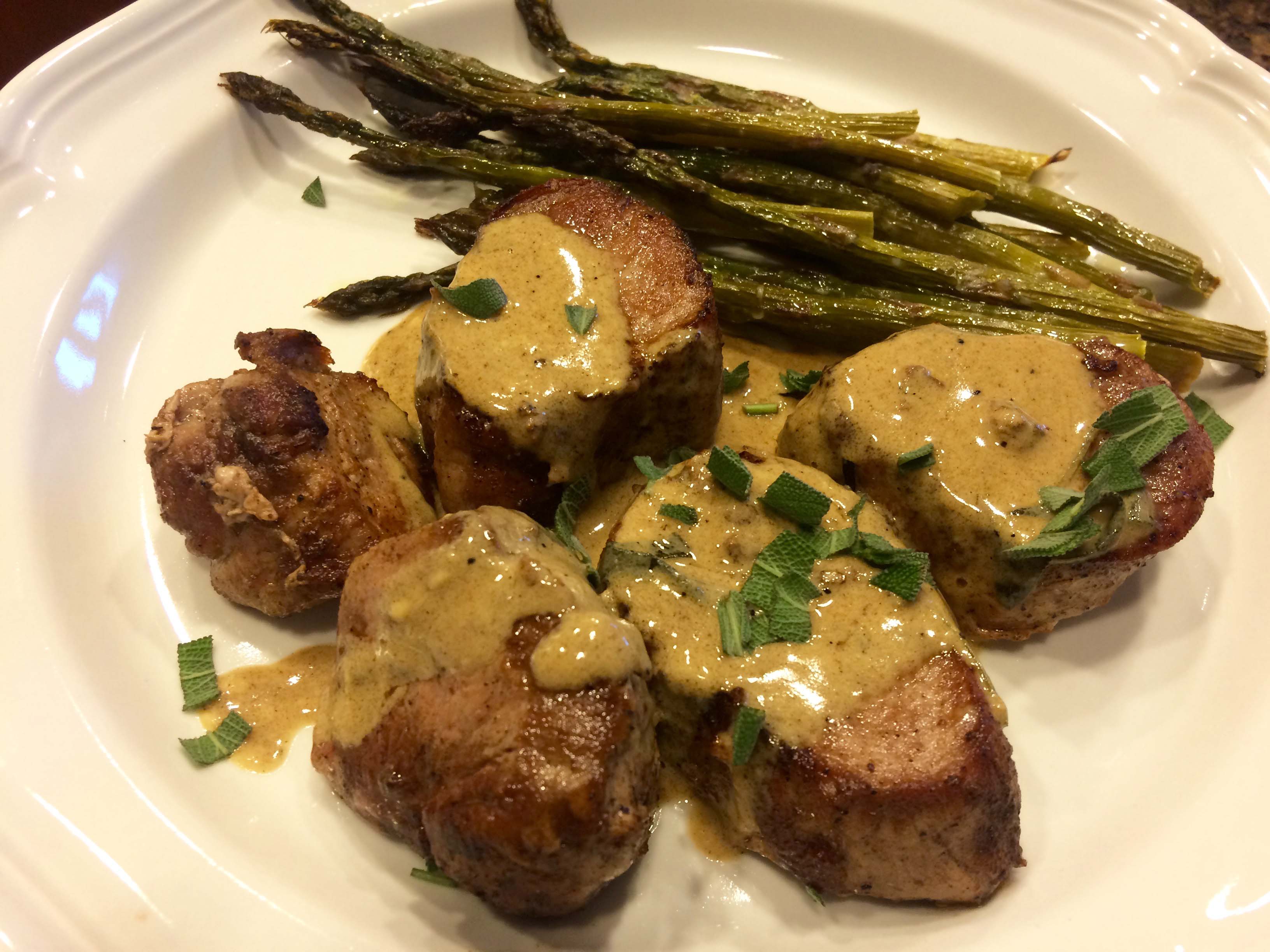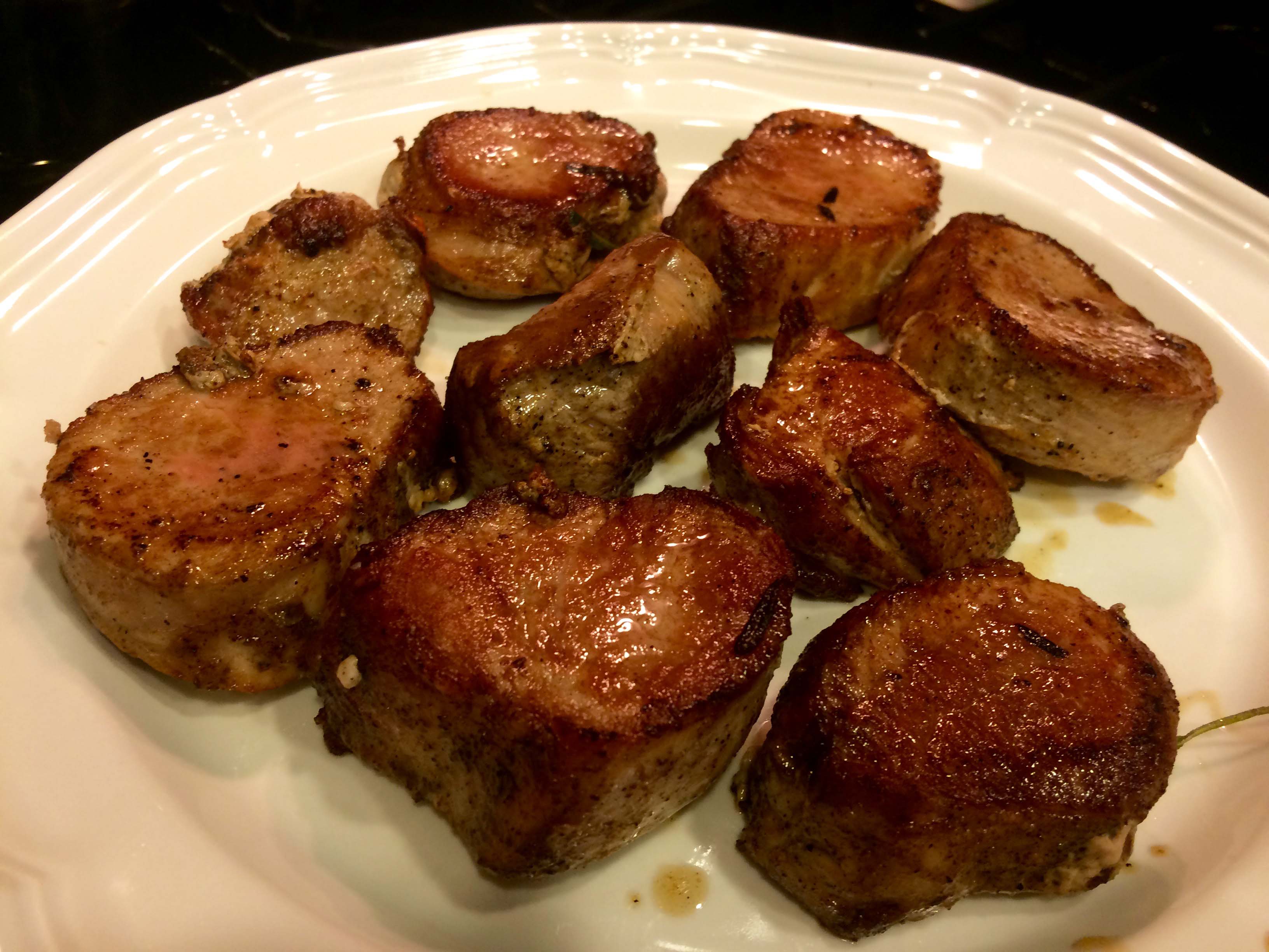 This post is one of my go-to recipes for a weeknight supper; it can be made in less than 30 minutes and with a heritage pork loin yields a tasty dish. I did vary from the original recipe adding some fresh rosemary to the pan while browning the roast and substituting chopped sage for the parsley leaves as garnish.