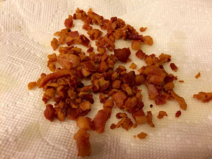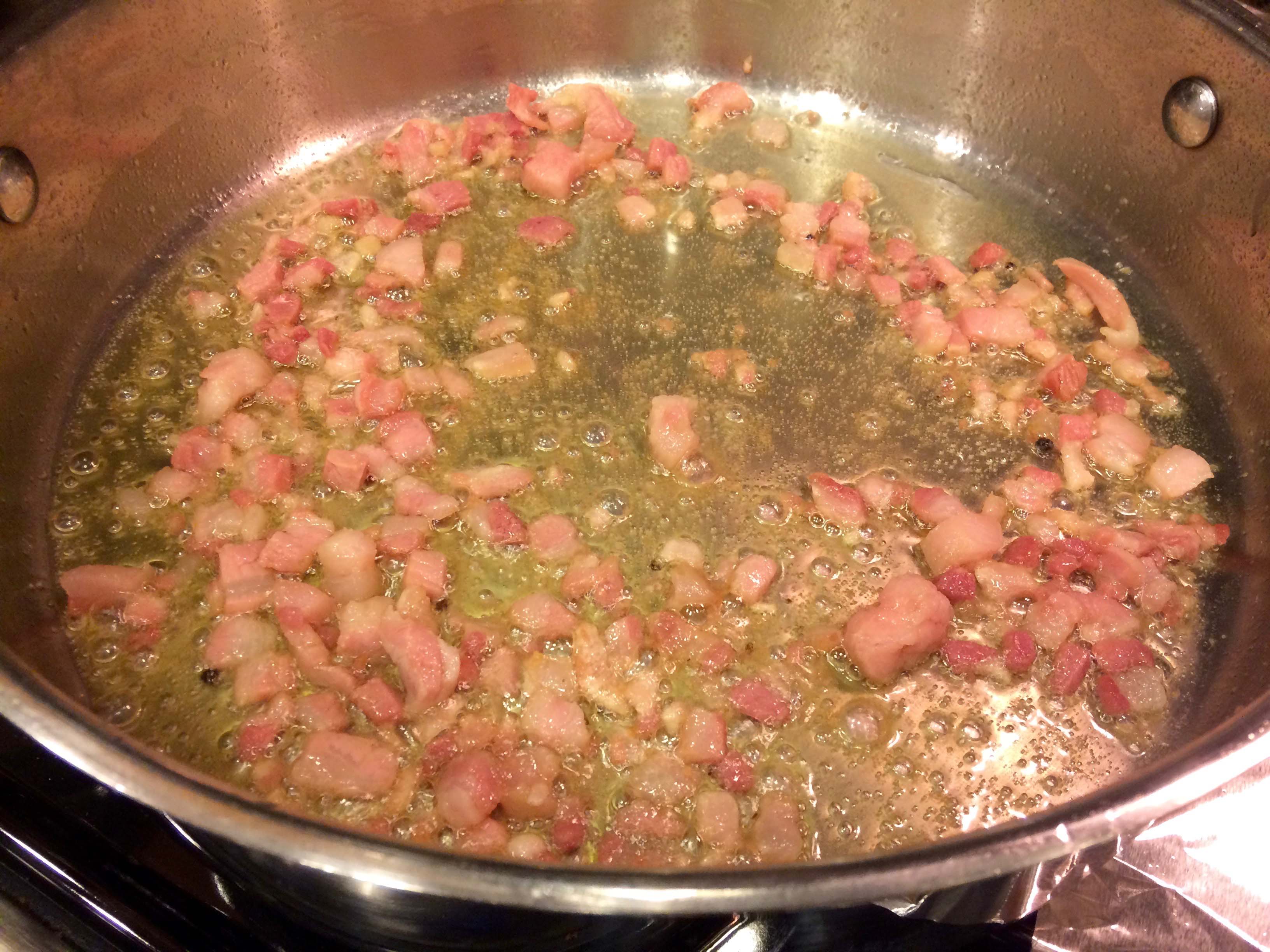 Use a slotted spoon to transfer pancetta to a paper-towel-lined plate.