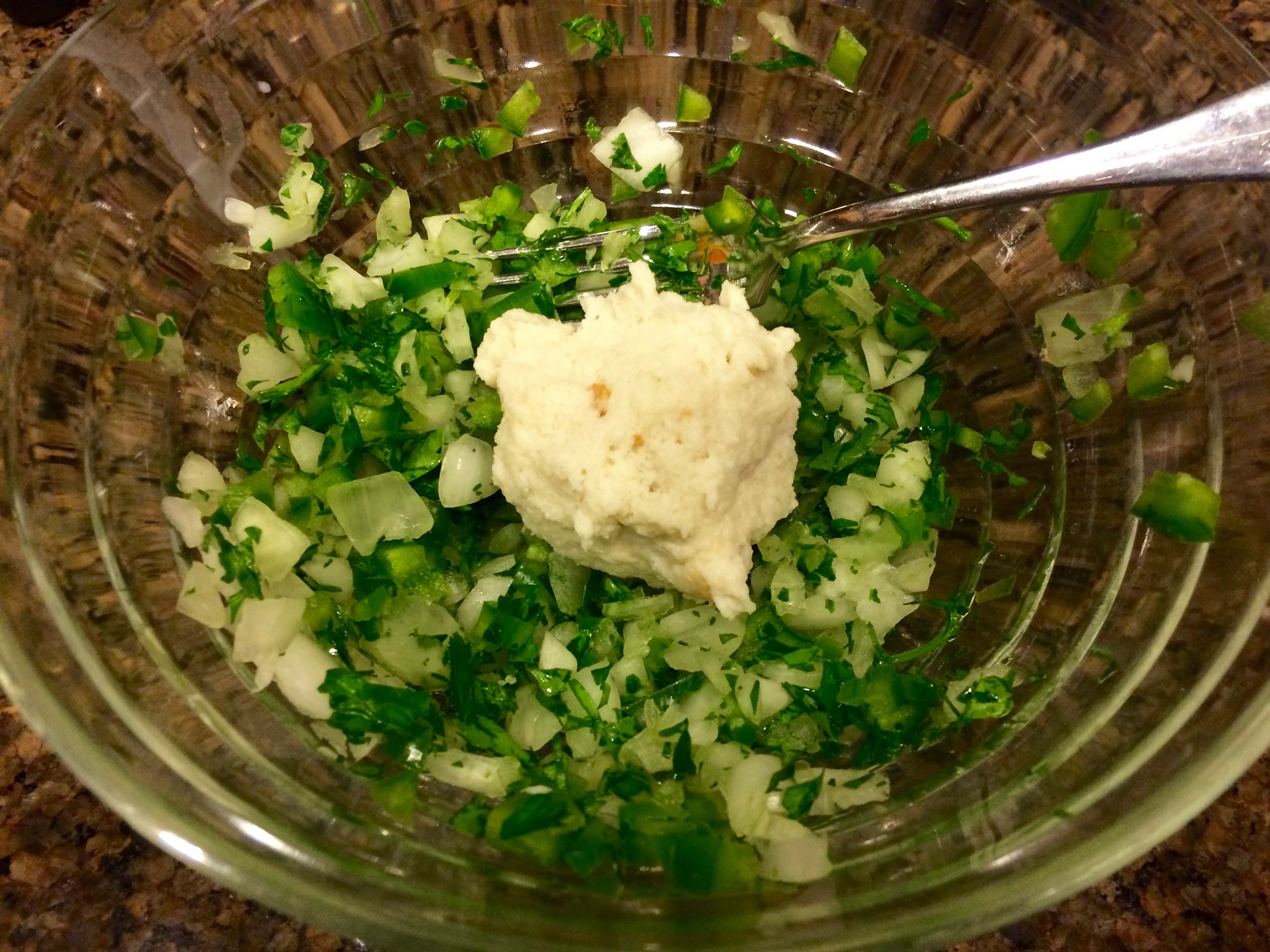 2  – Put the parsley, onion, and jalapeño pepper in a bowl and mix together well.