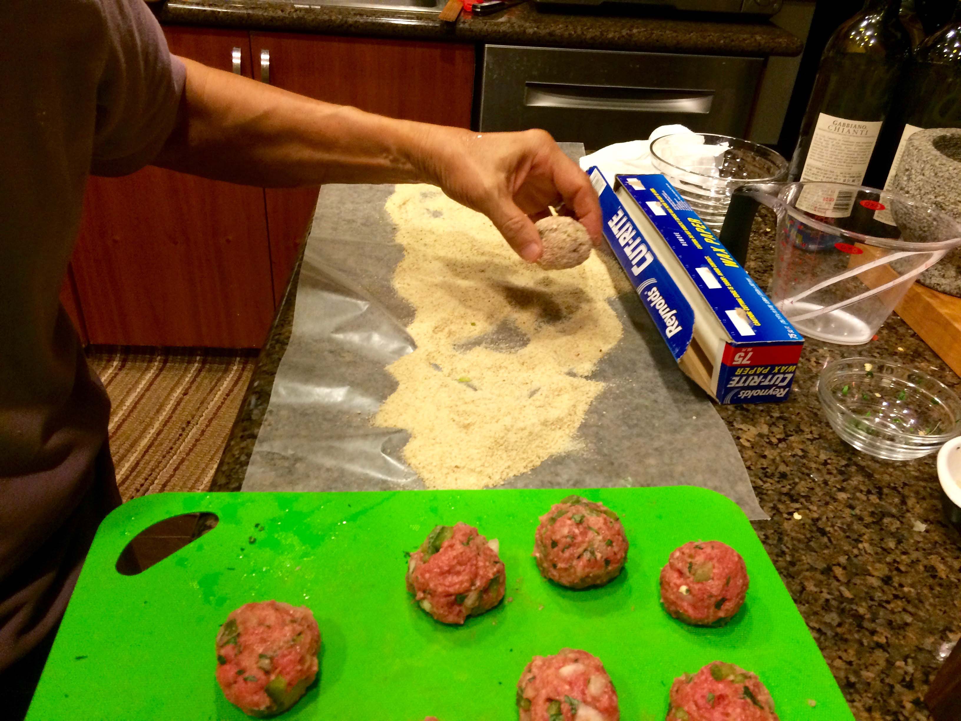 Breading meatballs
