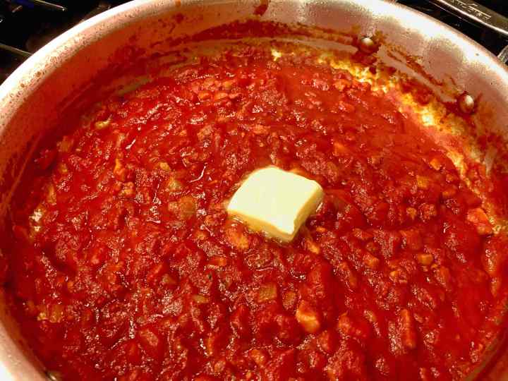 6.) After the sauce has cooked, add the butter and check for seasoning.