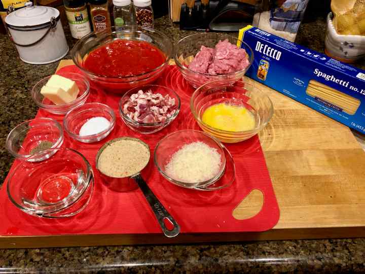 I followed the recipe pretty closely; however, I added a little olive oil to the butter to prevent it from burning; I substituted pancetta for the prosciutto and a 14.5 ounce can of imported chopped tomatoes for the pound of fresh. Finally, I finished cooking the pasta in the sauce rather than pouring it over the pasta. Both the sauce and the meatballs were delicious. I enjoyed the pure tomato flavor of the sauce and the lightness of the meatballs. As my better half said, “it’s a keeper.”