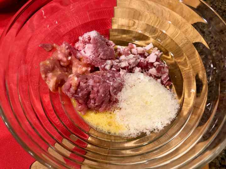 1. Mix together the veal, ham, cheese, 1/2 teaspoon salt and the egg. (To keep the dumplings light, don’t over work the mixture.)