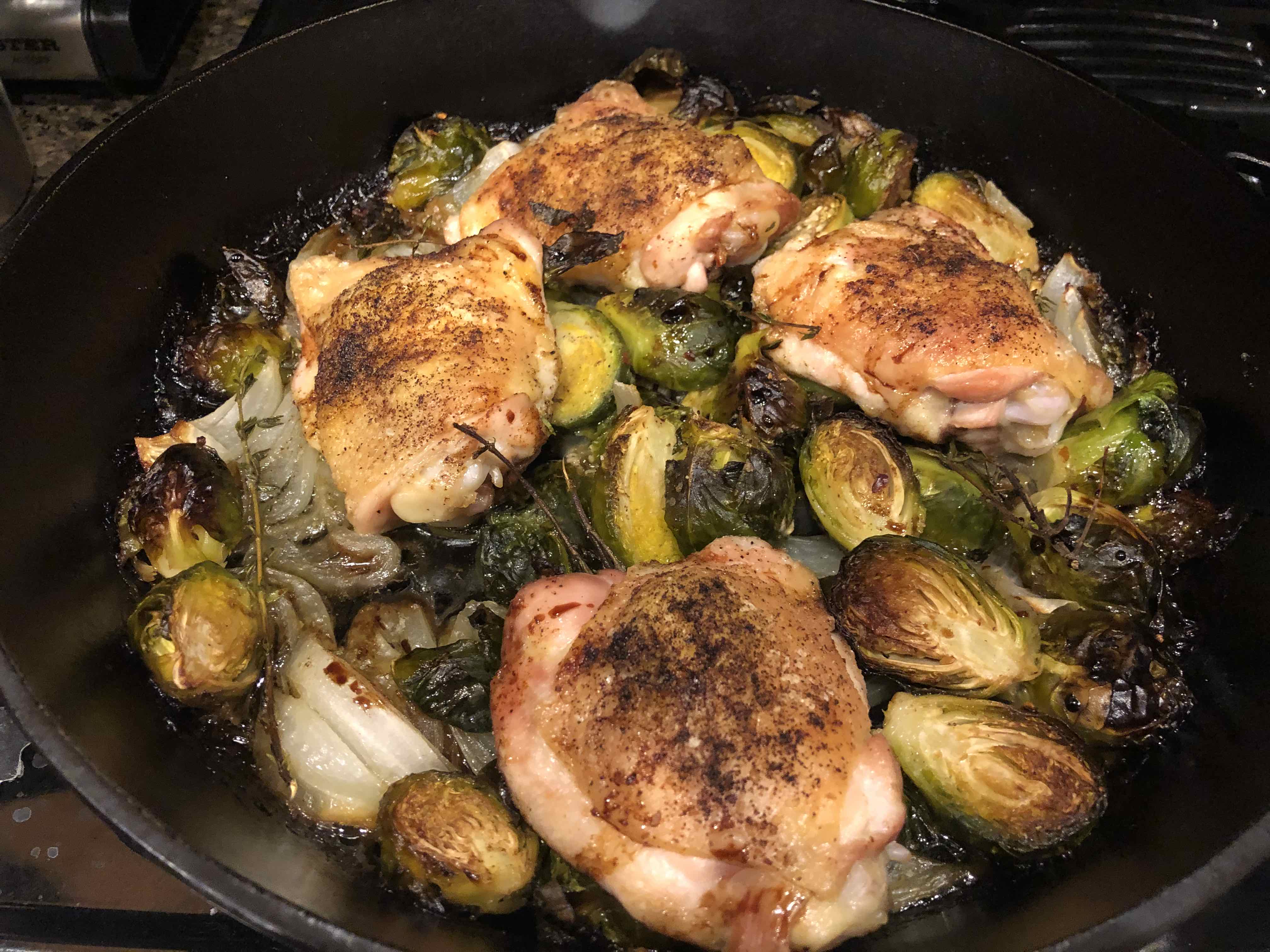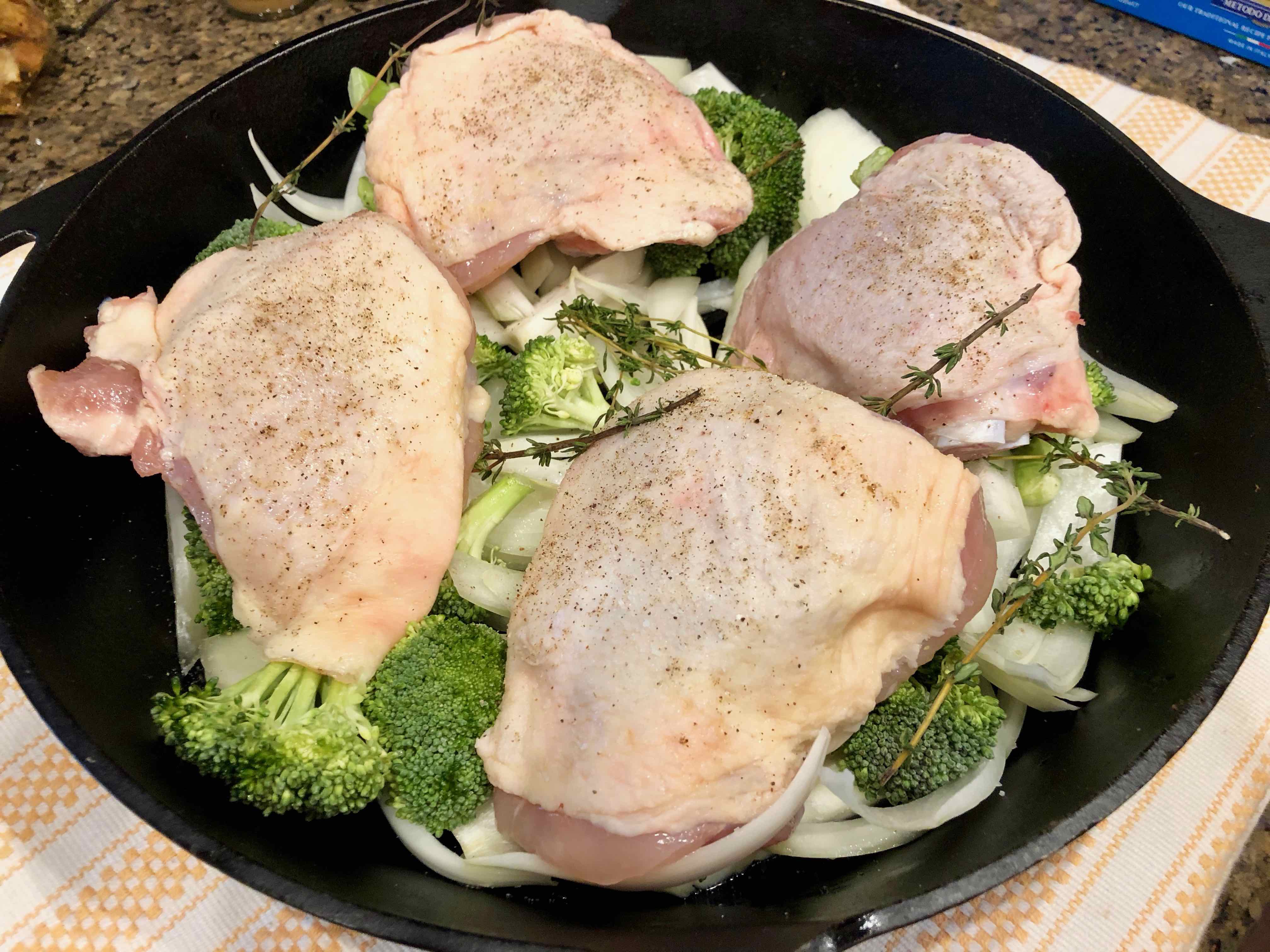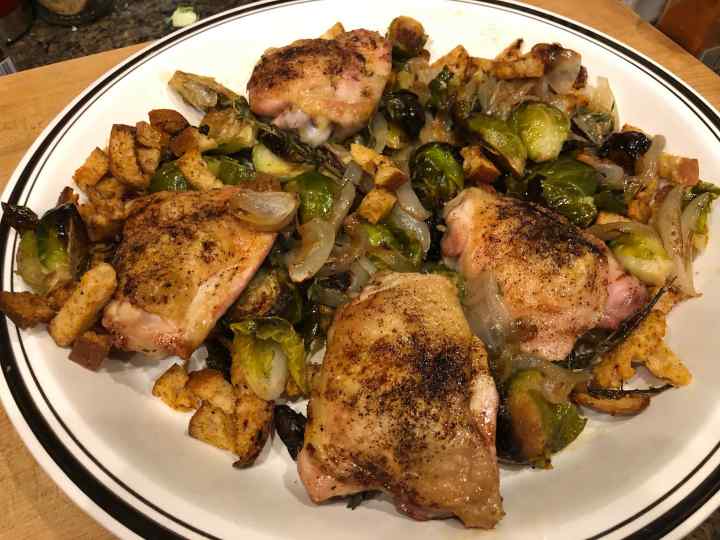 Simple sick day fare typically includes dishes like pasta with butter and cheese, stracciatella (Italian egg-drop soup), or even a potato frittata. All easy to prepare, with little cleanup afterward. To this list, I’ve recently added roasted chicken thighs prepared from one of Sam Sifton’s “You Don’t Need a Recipe” columns on the New York Times Cooking website.
