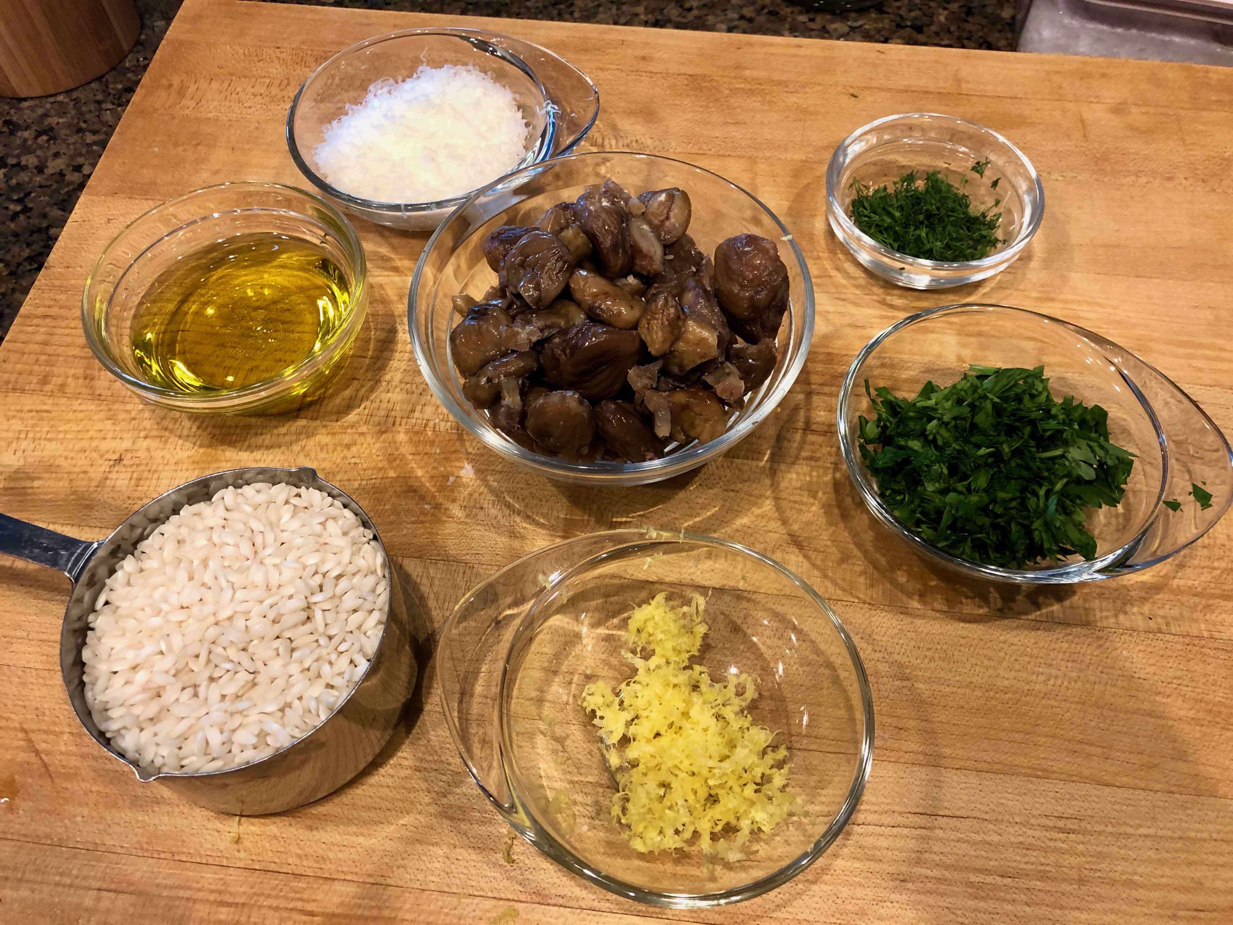 The recipe was for a Sicilian dish, rice with chestnuts, or risu chi castagni. Because I’ve enjoyed chestnuts since I was a boy, I was intrigued by the recipe and had to make it, even though I wasn’t quite sure how it would turn out. I had some reservations about how textures of the two main ingredients would come together.