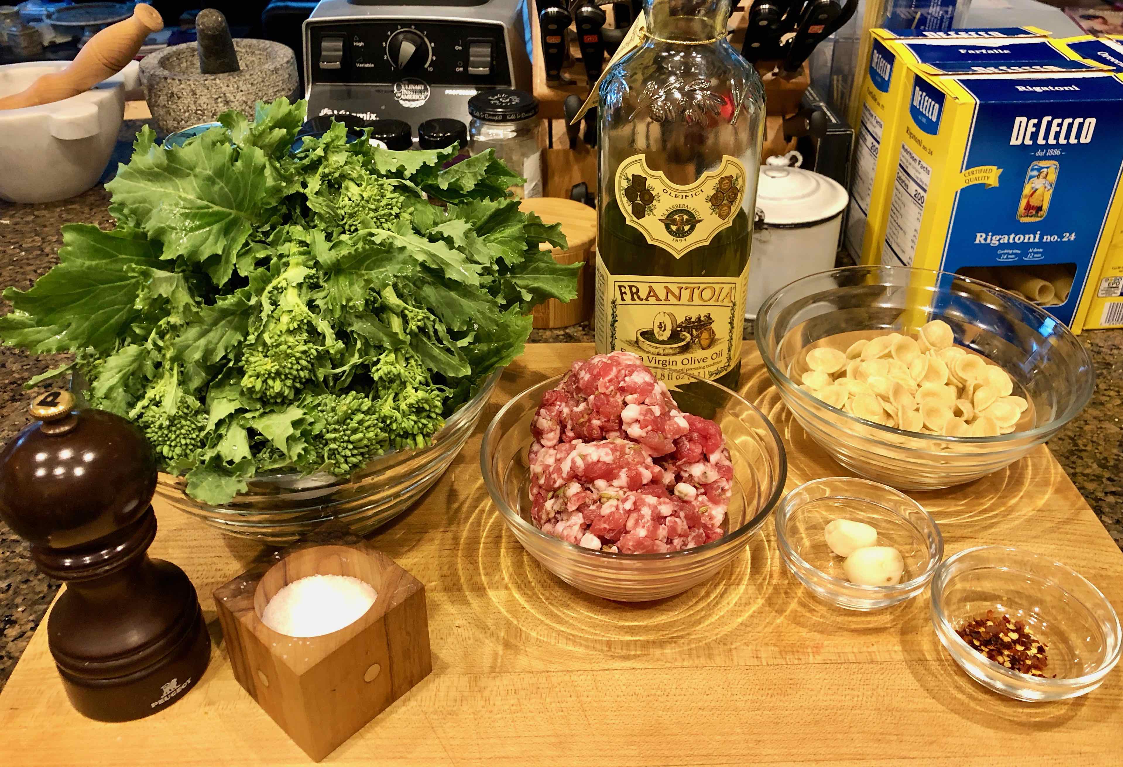 Orecchiette with Broccoli Rabe and Sausage (Adapted from Williams-Sonoma Essentials of Italian, by Michele Scicolone)