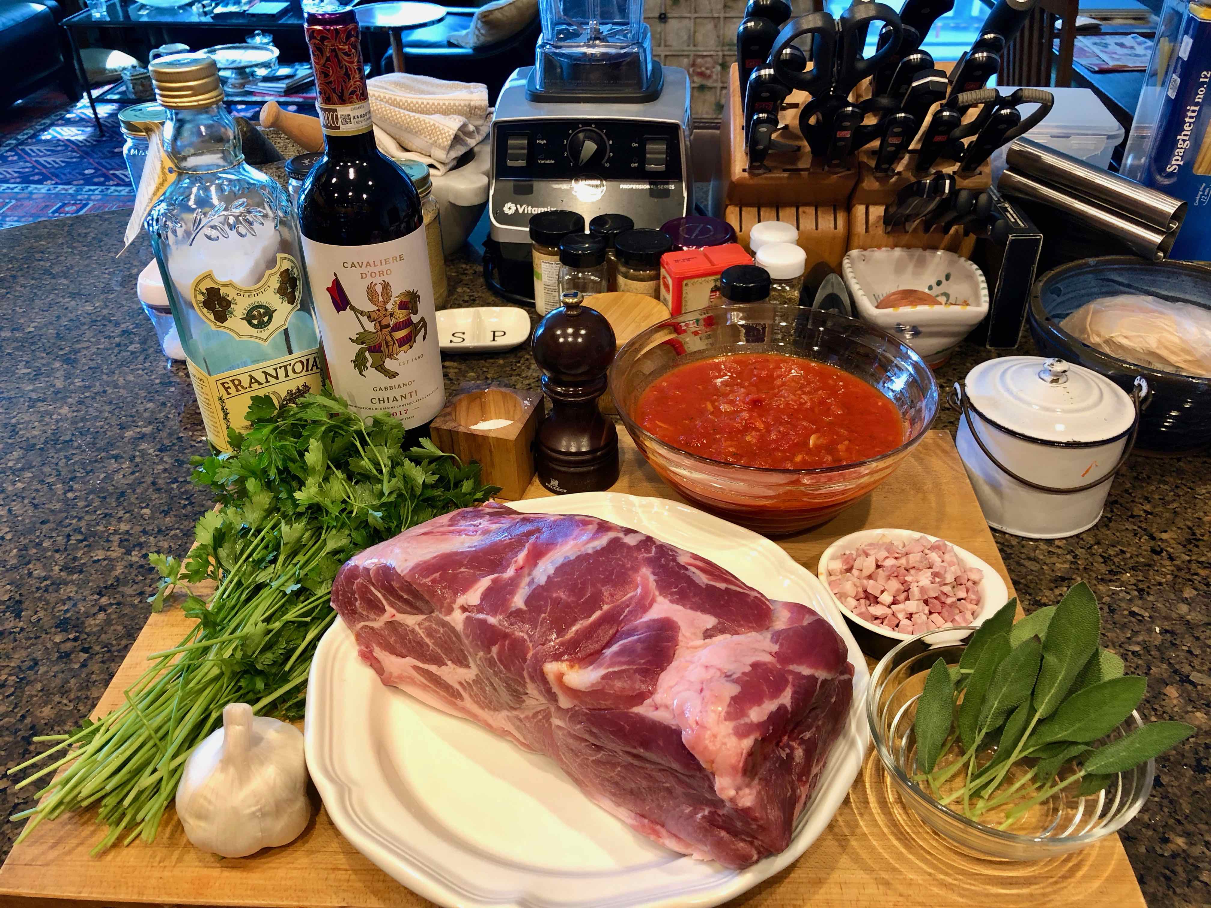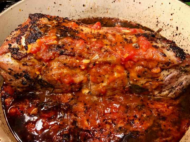 Given the end result, I’m glad that I prepared the sauce, which added a lot to the dish’s aromatic and flavor profiles. For the wine, I opted for a simple, young Chianti, which was more than adequate. I should note, however, that to reach the recipe’’s “fork tender” stage, my bone-in roast took a full 3 hours of braising time, after 15 minutes of browning.