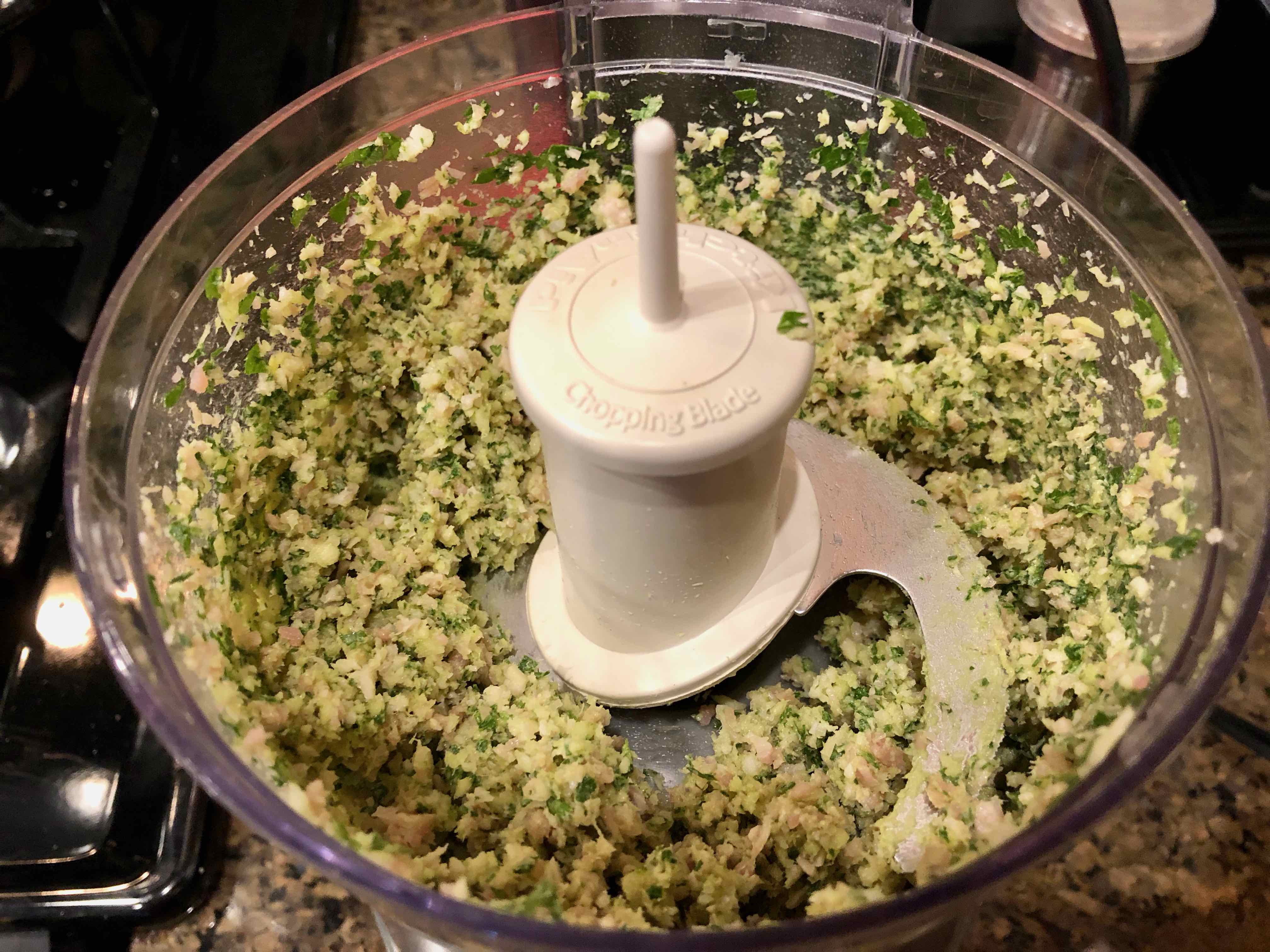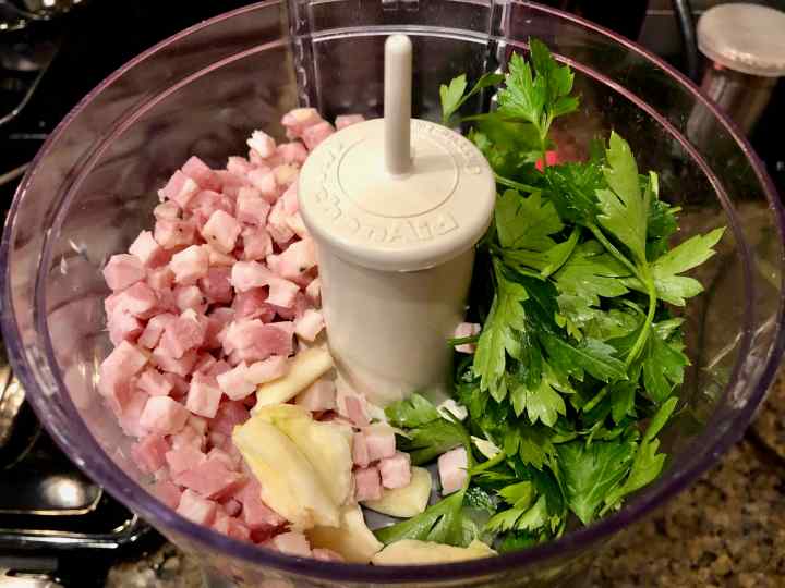 2. Mince together the pancetta, garlic and parsley to form a smooth paste. (I used a mini food processor for this step.)