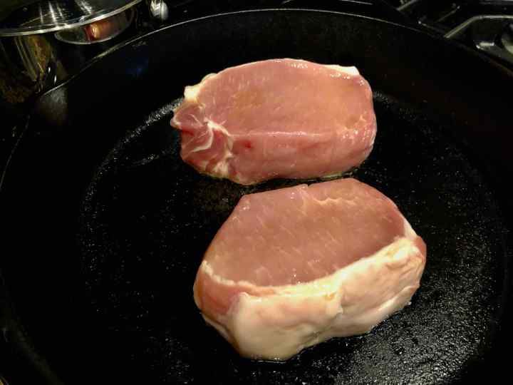 2. Heat a cast-iron or other sturdy ovenproof skillet just large enough to hold the chops over medium-high heat for 4 to 5 minutes; the pan should be really hot, just about smoking.