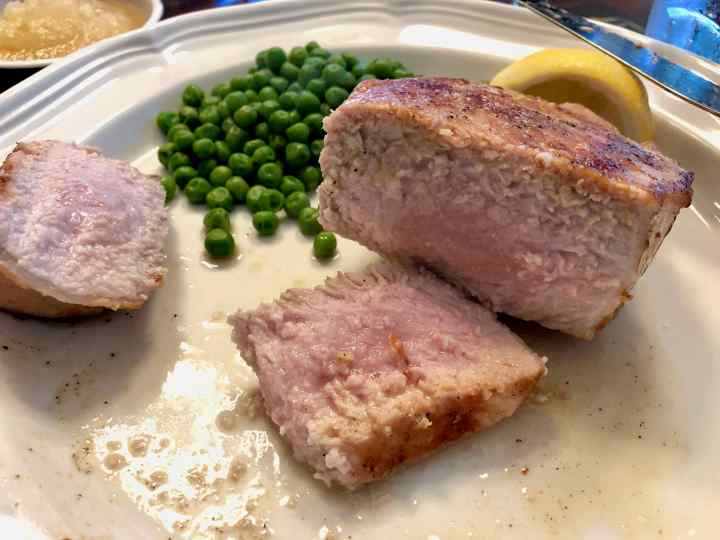 Not knowing how, or even if, the recipe would turn out, I served the chops just with a side of buttered peas; however, some creamy mashed potatoes would have been a welcomed addition to the plate.