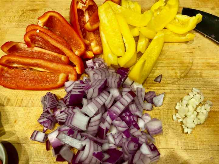 2 bell peppers (any color) sliced, 1-inch thick, my addition