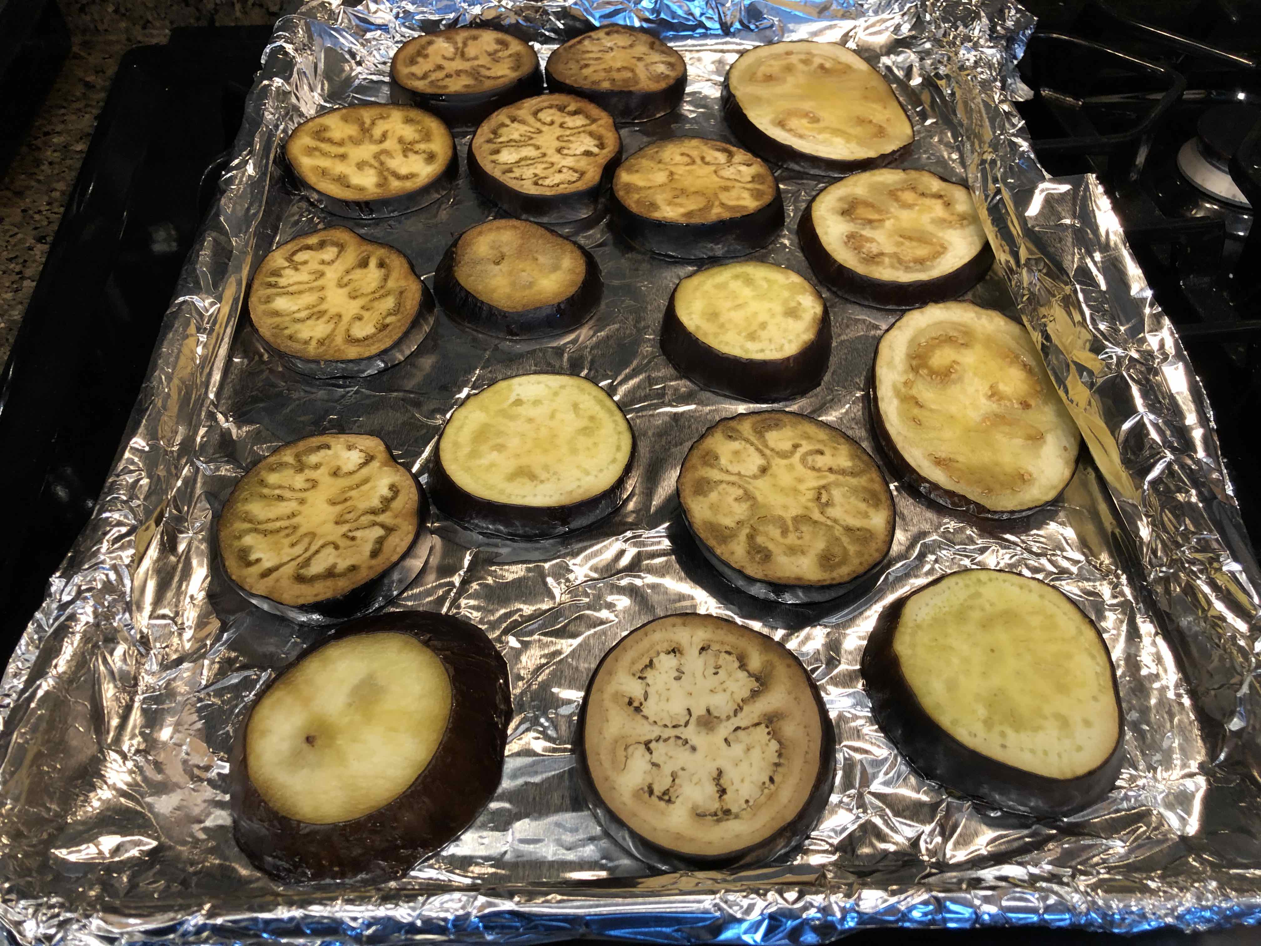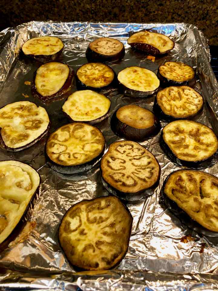 3 medium-large eggplants, cut crosswise into 1/2-inch slices (I used 5 small- to medium-sized eggplants, approximately 3 pounds)