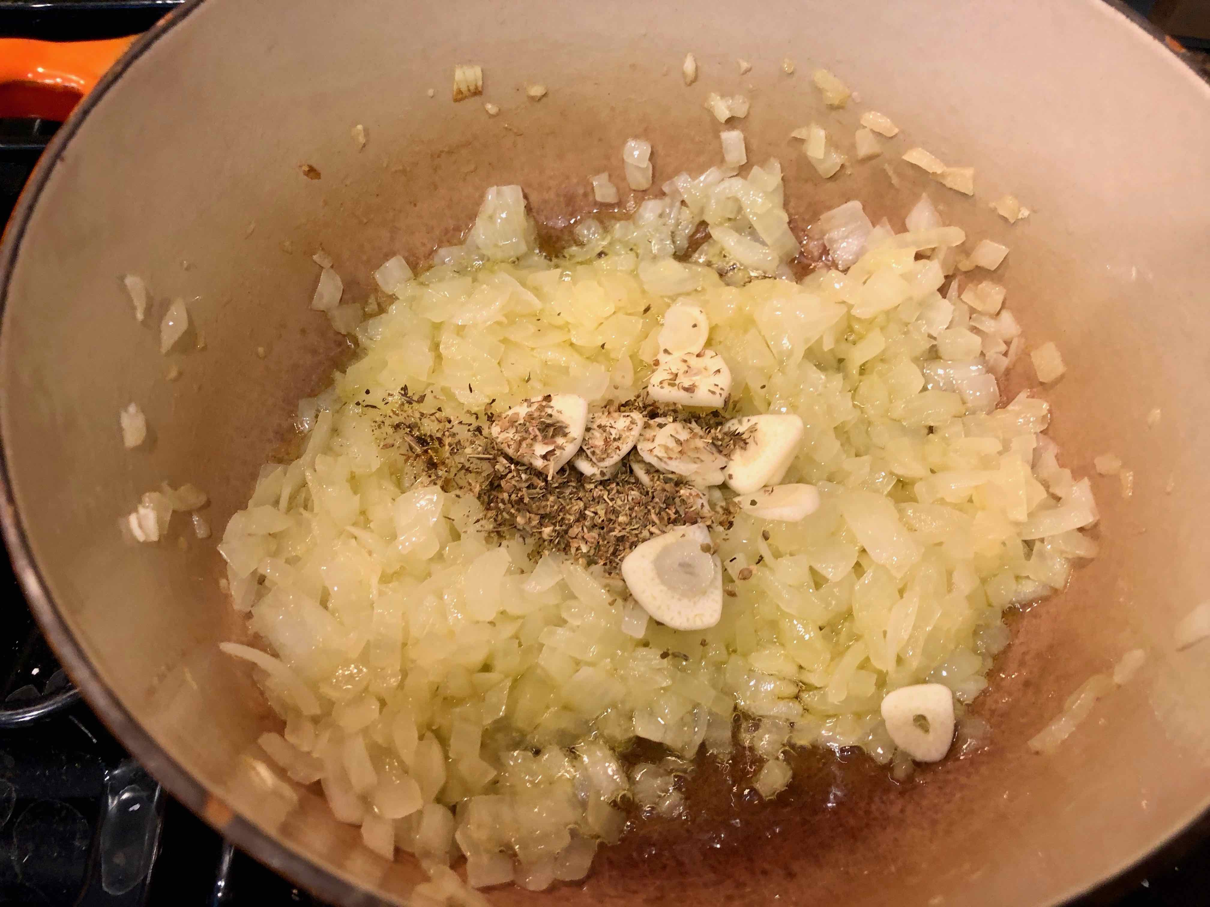Adding garlic and dried oregano