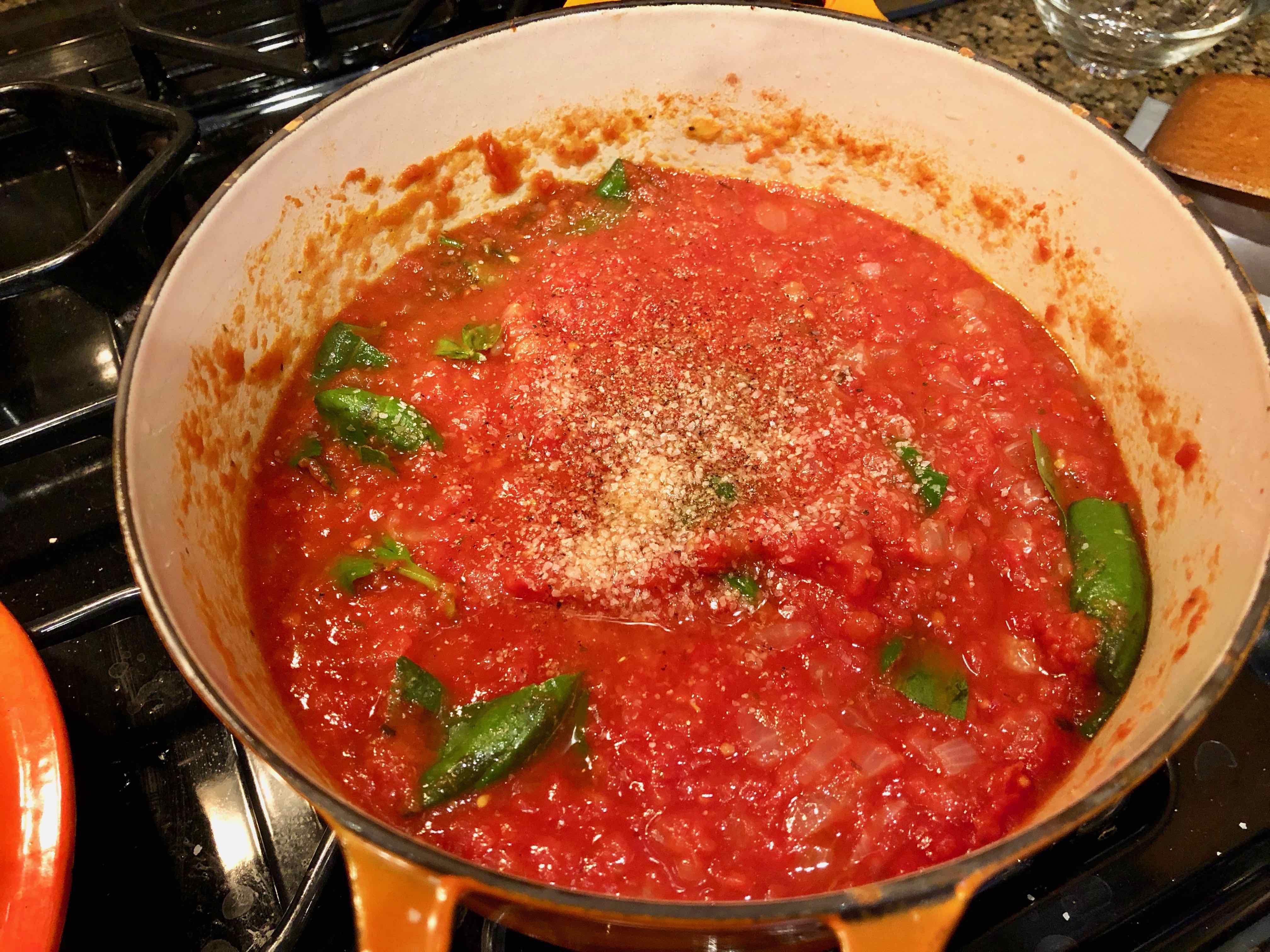 1 28-ounce can no-salt plum tomatoes or crushed tomatoes (I used 2 14-ounce cans.)