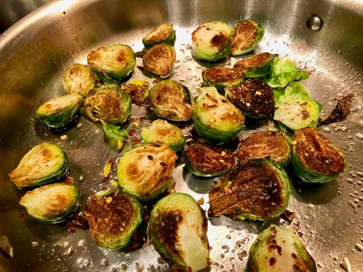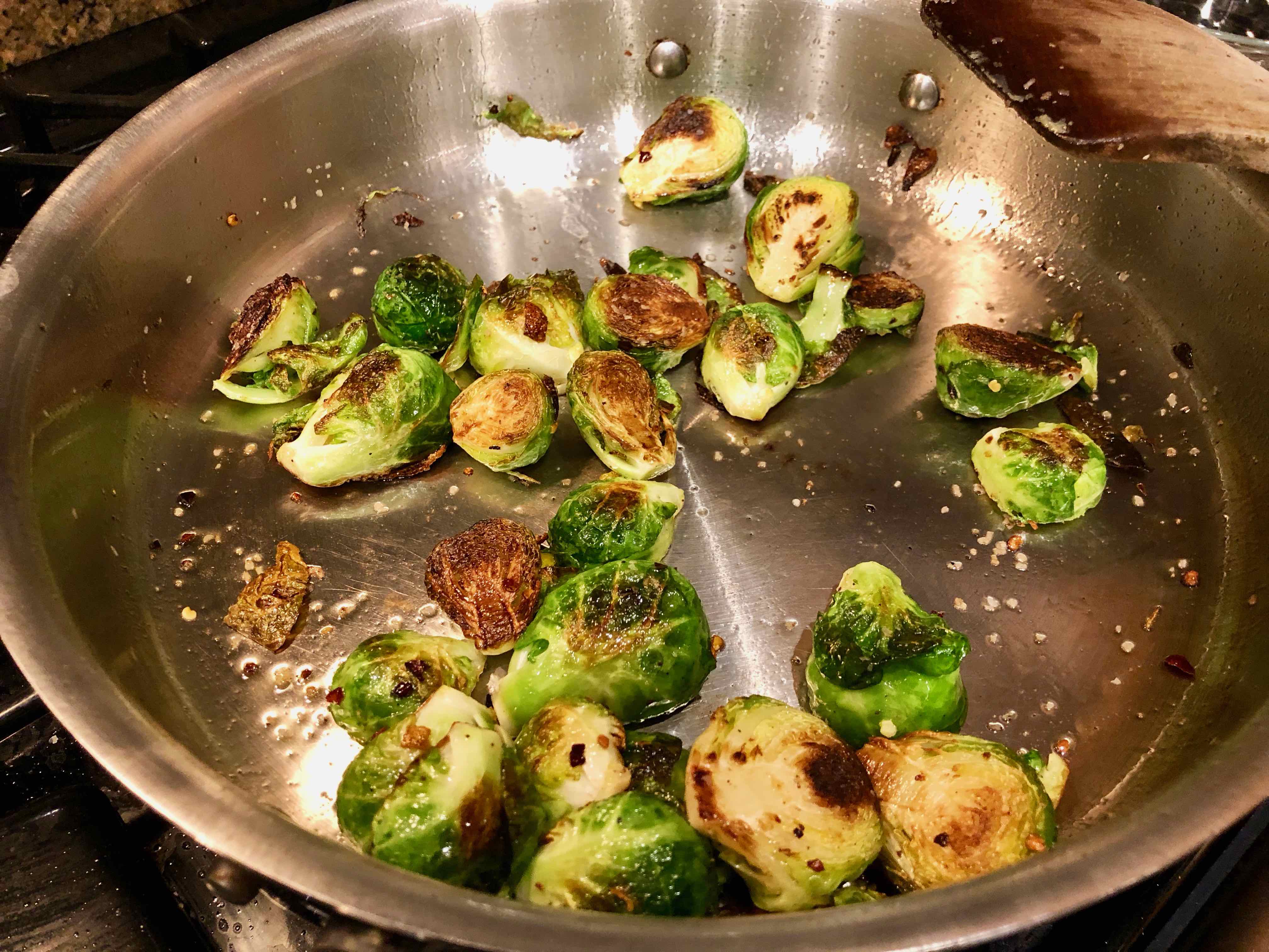 6. Add the red-pepper flakes, stir and cook until the brussels sprouts are crisp-tender, 2 to 3 minutes.