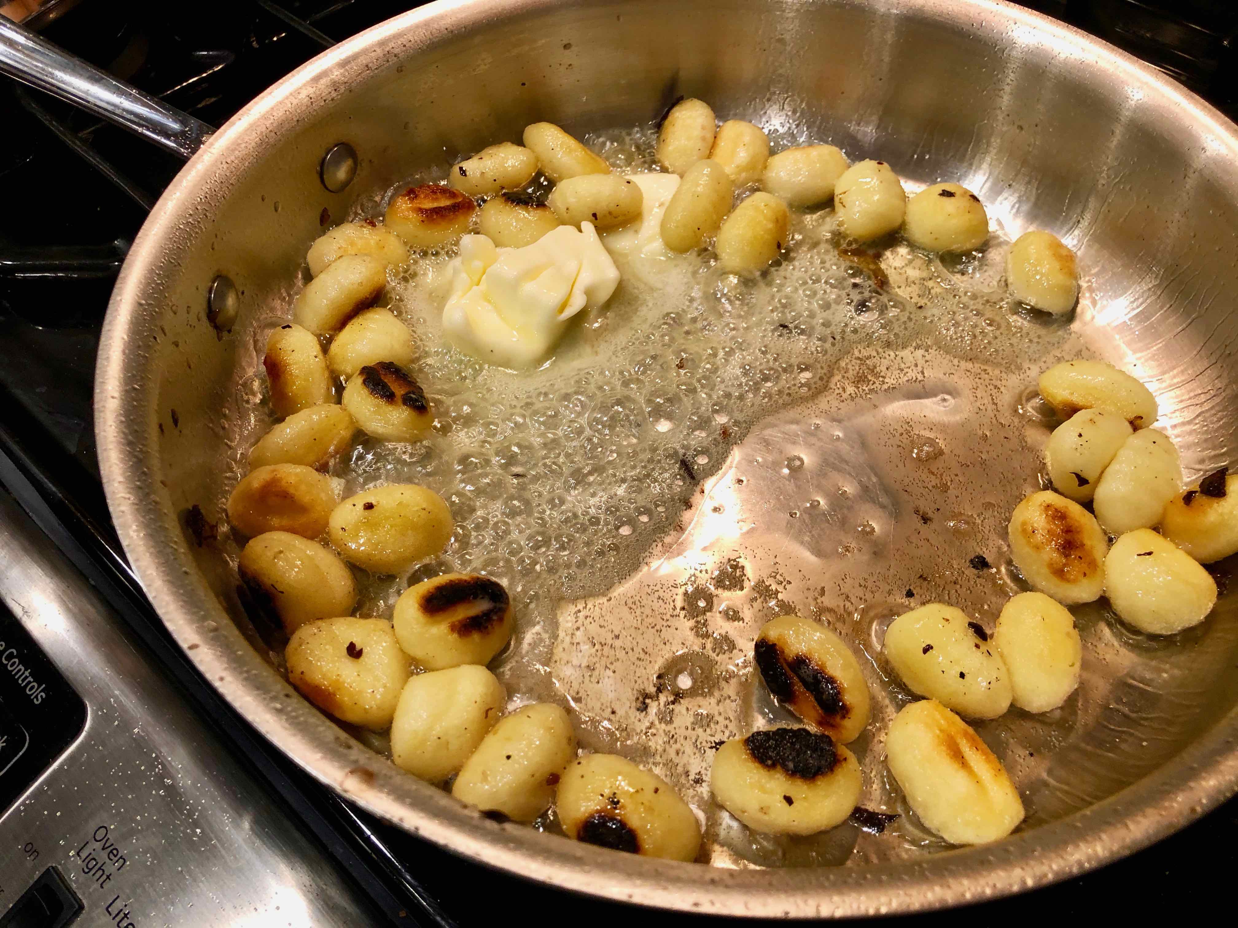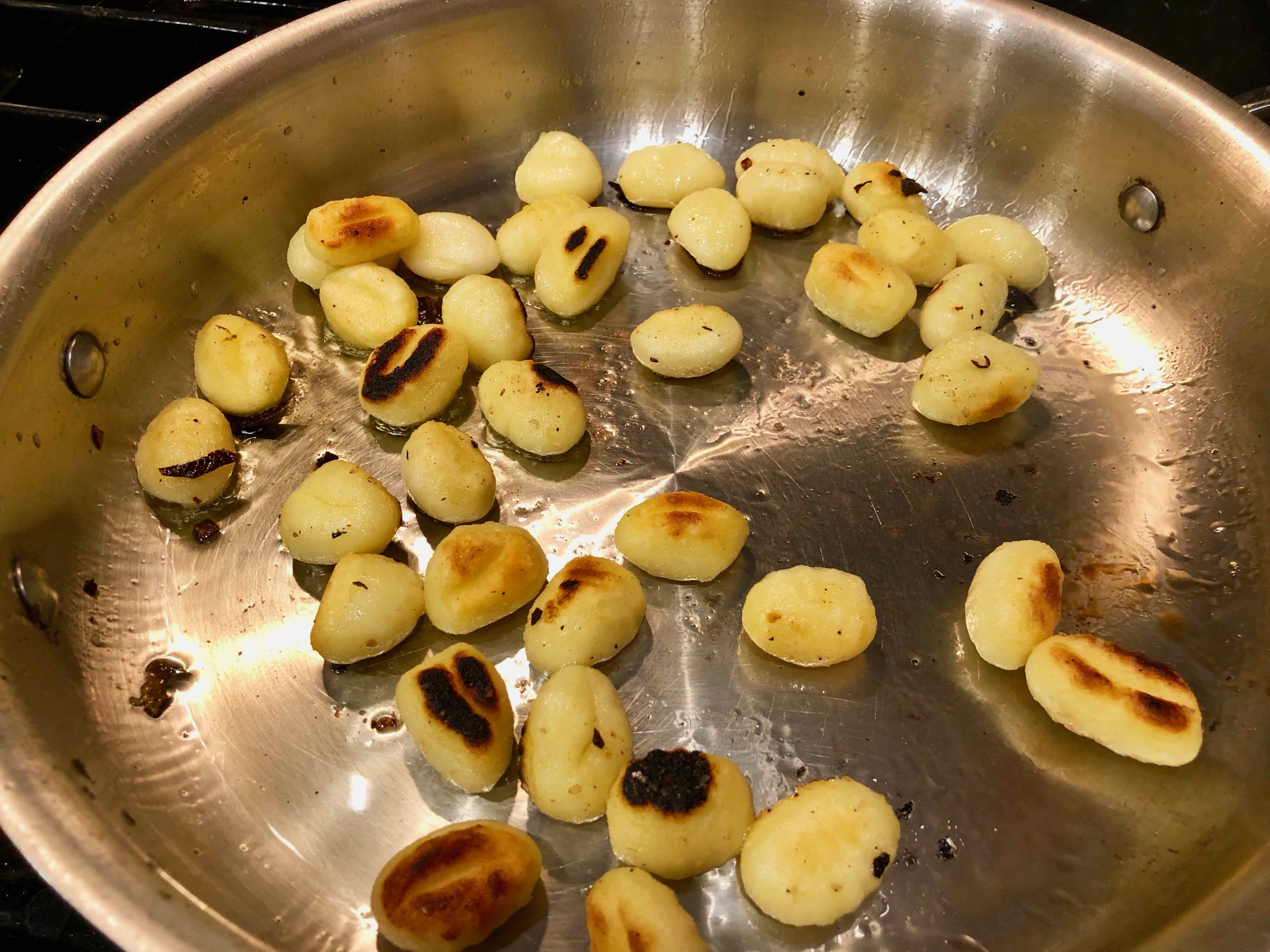 When the publication of an intriguing New York Times Cooking recipe for crisp gnocchi coincided serendipitously with my finding a forgotten shelf-stable package of those dumplings in the back of my cupboard, I had to make the dish.