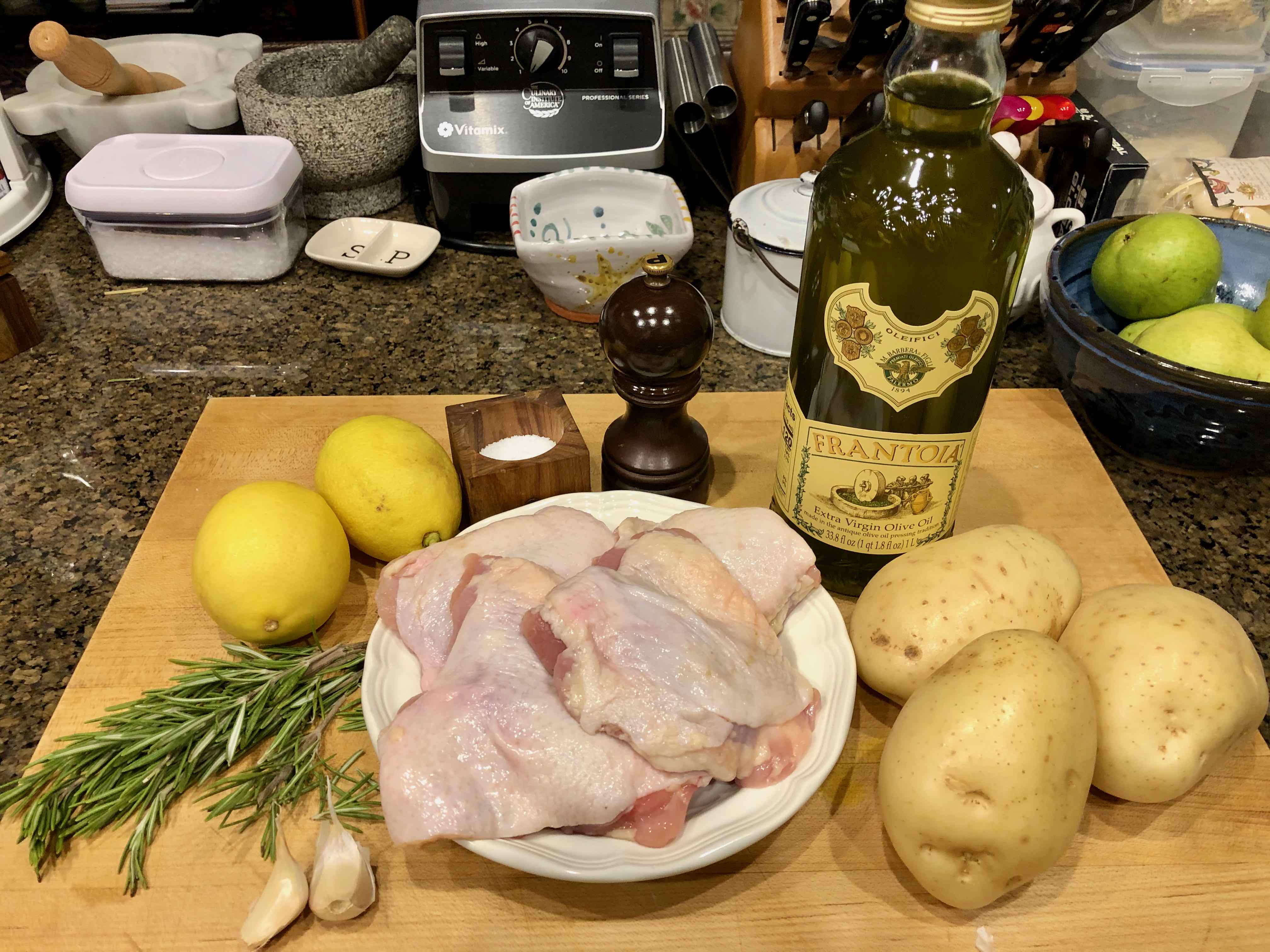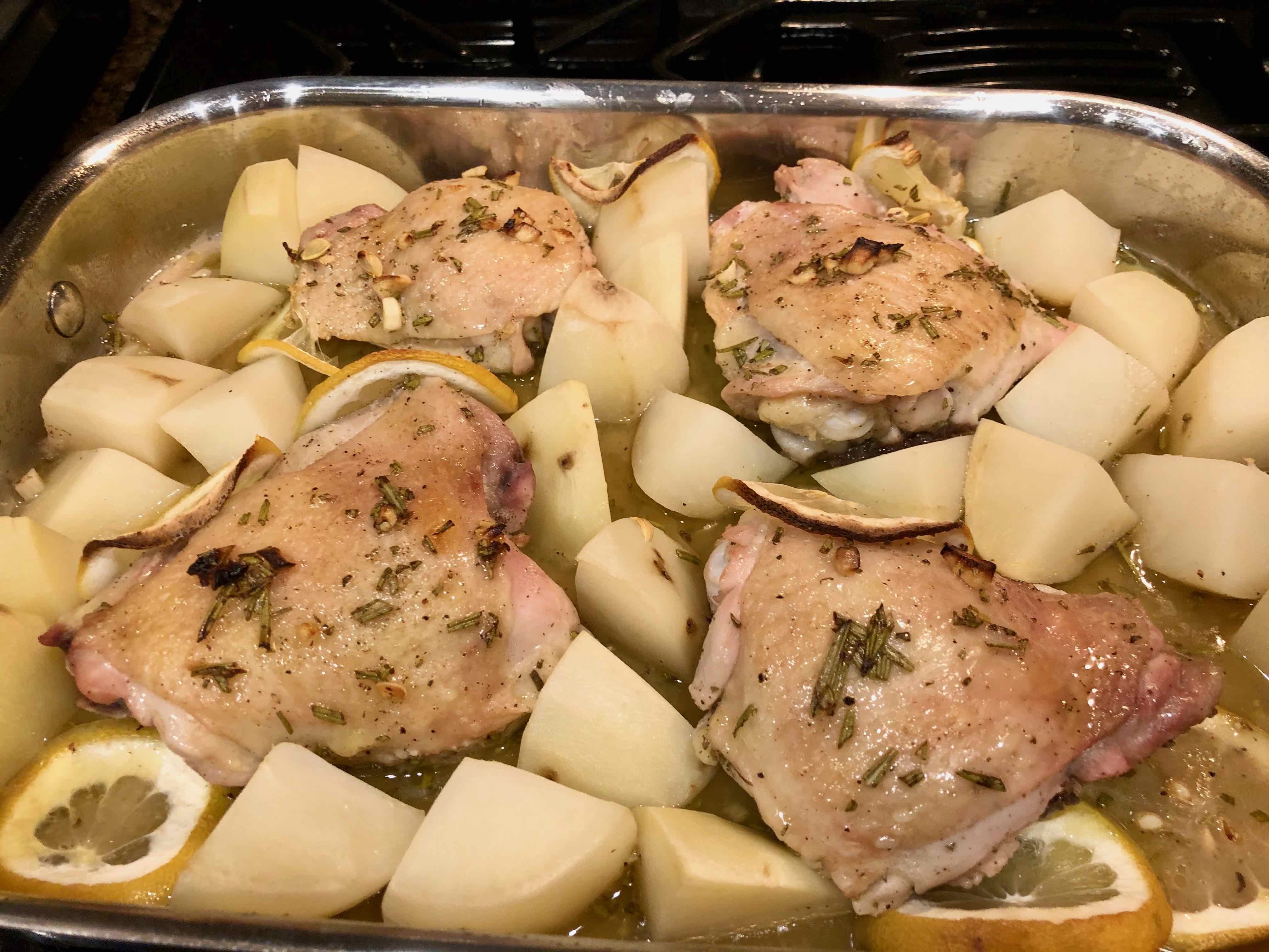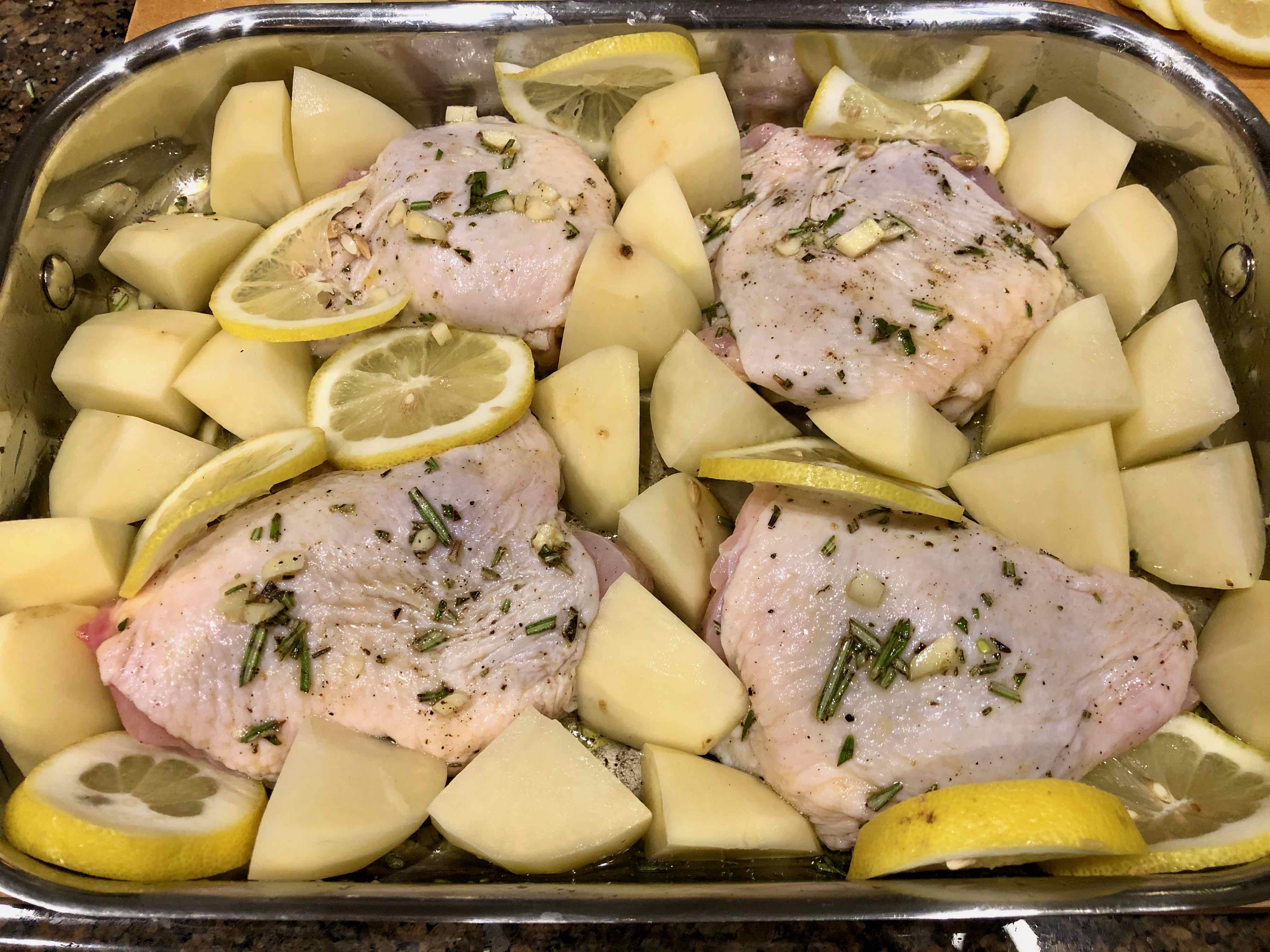 Baked Chicken with Potatoes and Lemon (adapted from Michele Scicolone’s 1,000 Italian Recipes)