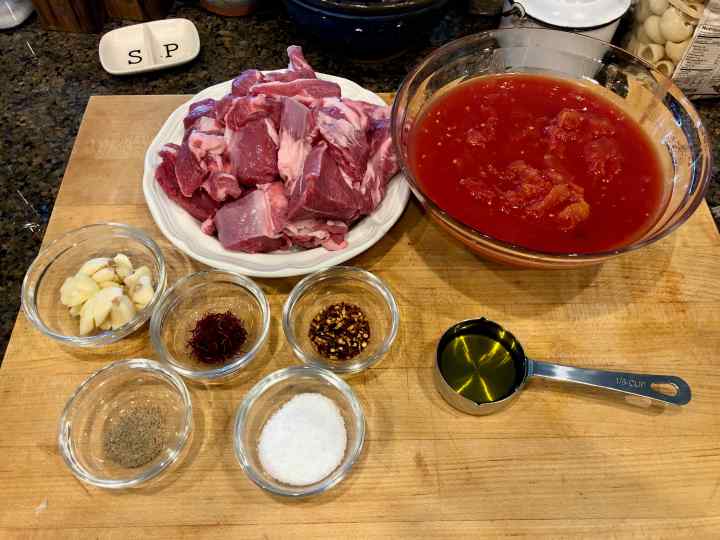 From the book, I chose to prepare her recipe for Lamb Stew with Saffron and Tomatoes, which appealed to me primarily for its use of saffron, a spice I always have on hand but seldom get around to using, but also for its relative simplicity and autumnal feel.