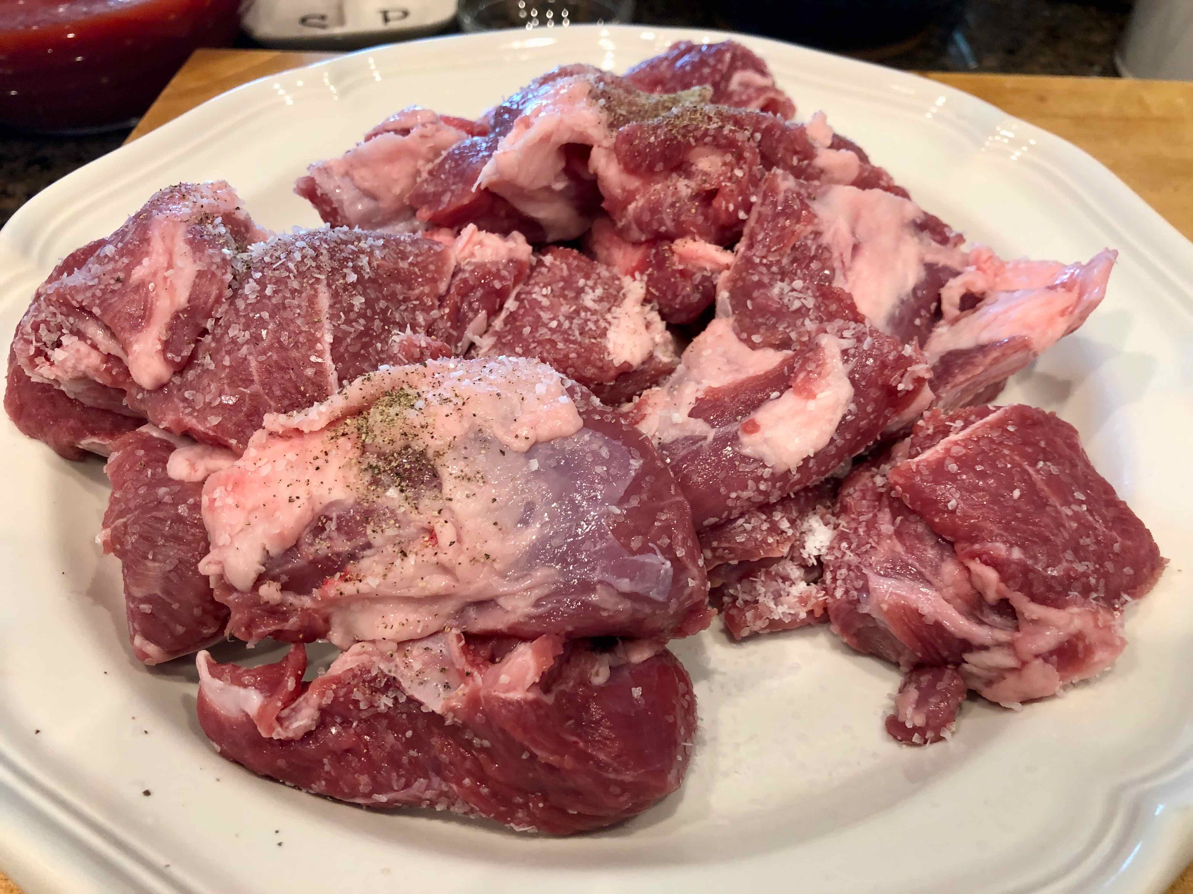 3 ¼ to 3 ½ boneless lamb shoulder, trimmed of excess fat and cartilage, and cut into 2-inch chunks. (This should yield approximately 2 pounds of chunks.)