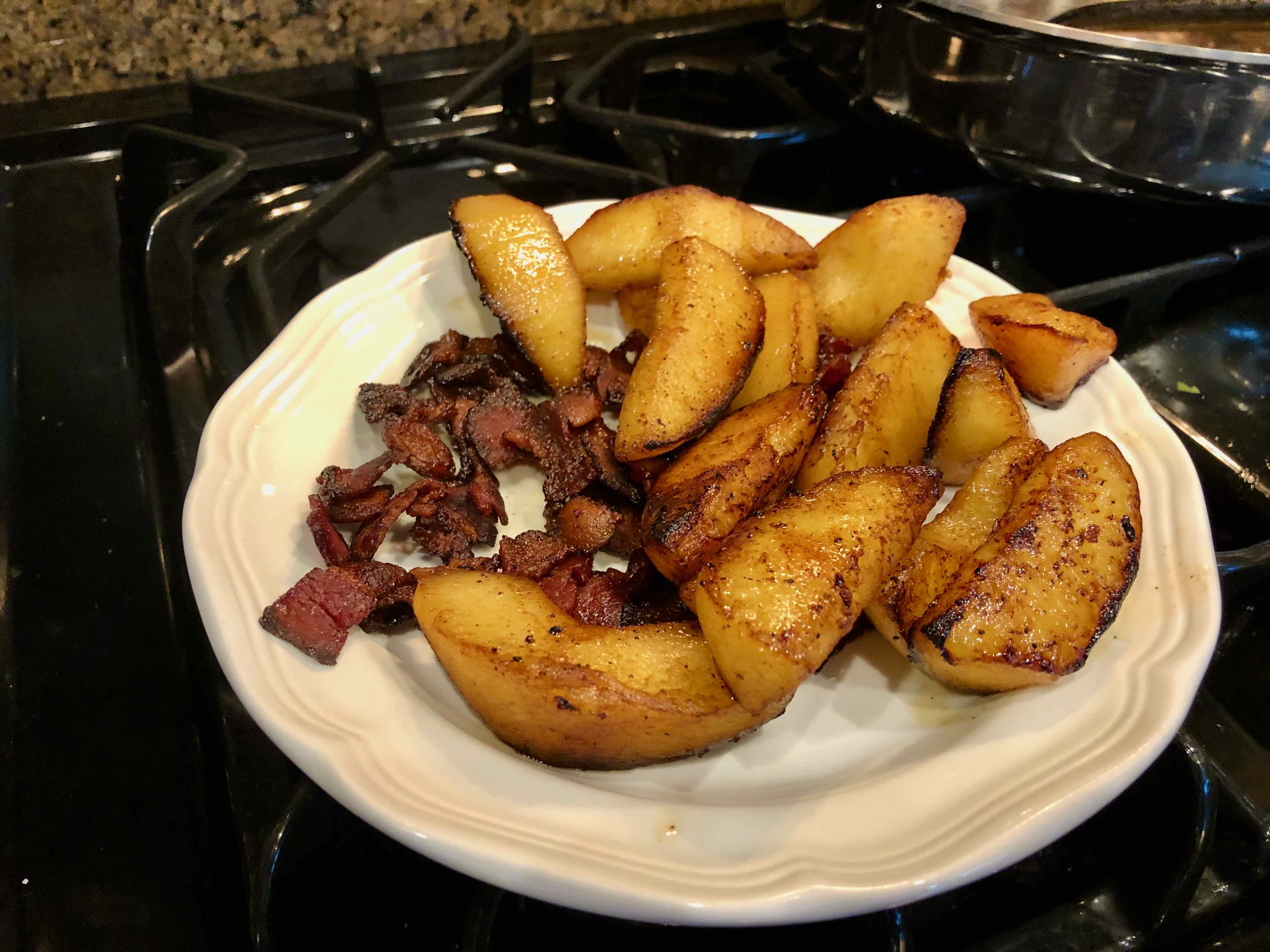 Apples & bacon set aside