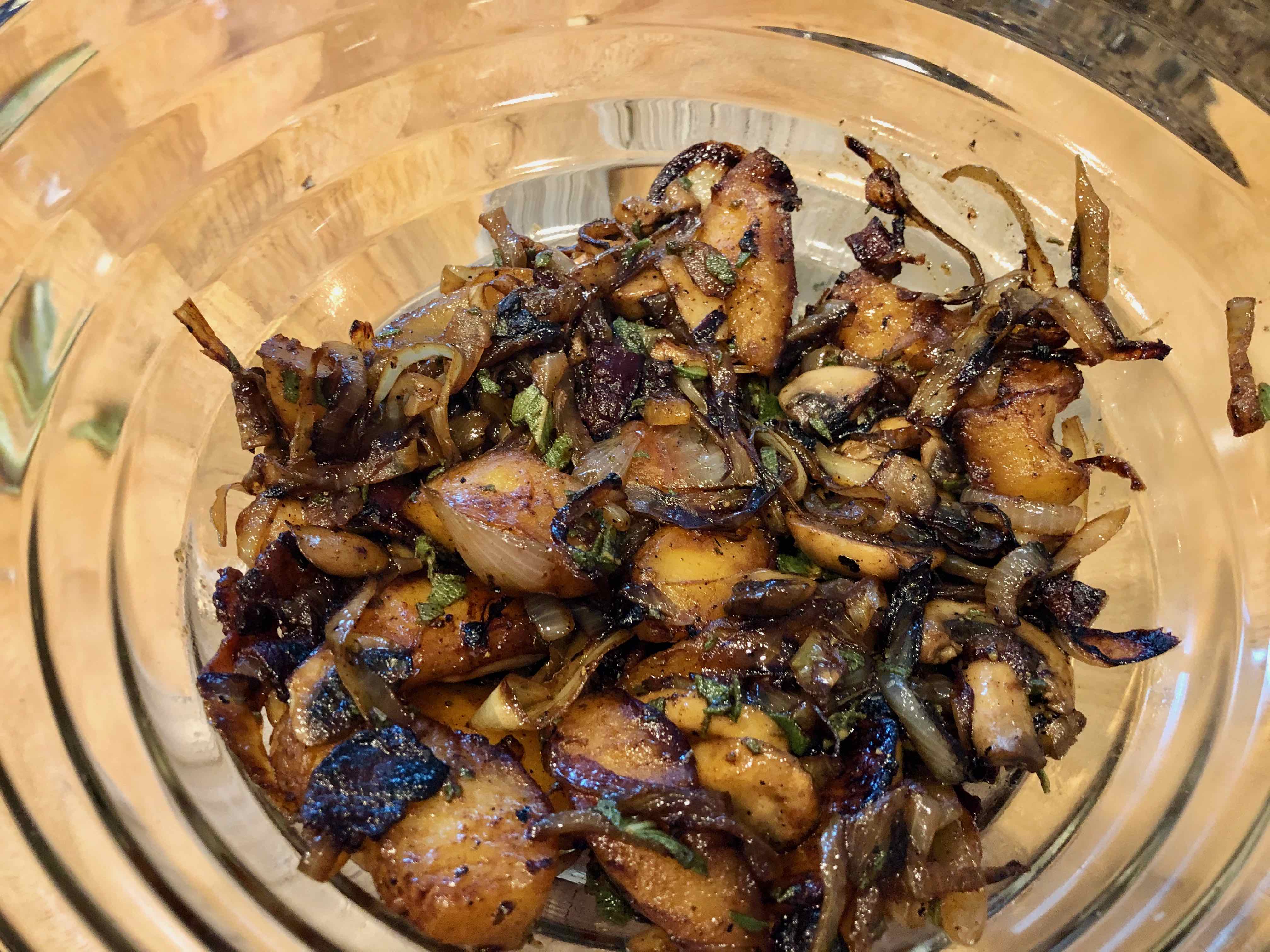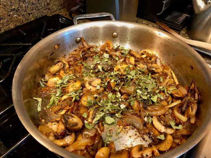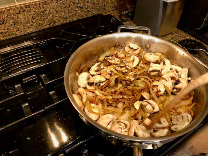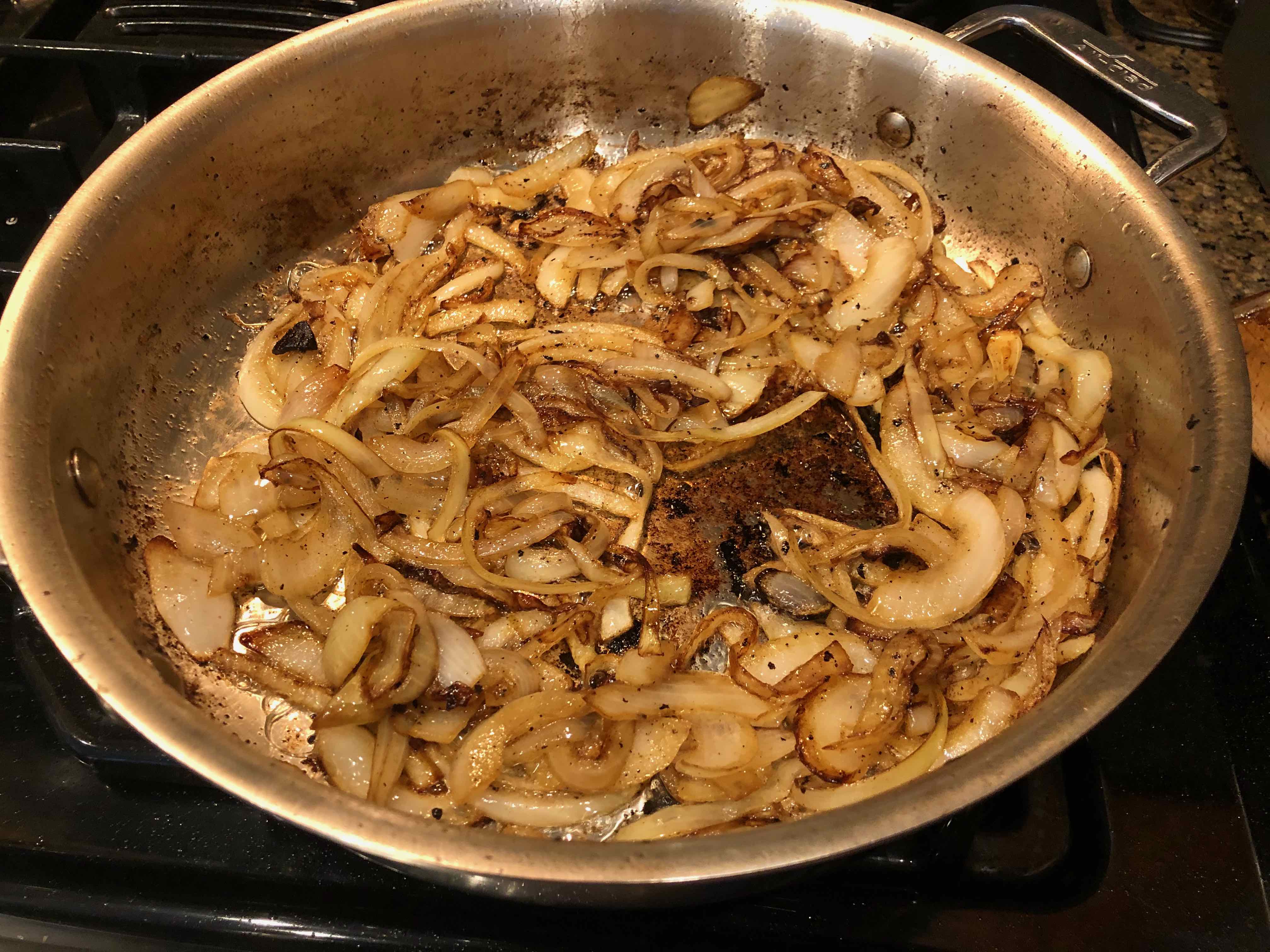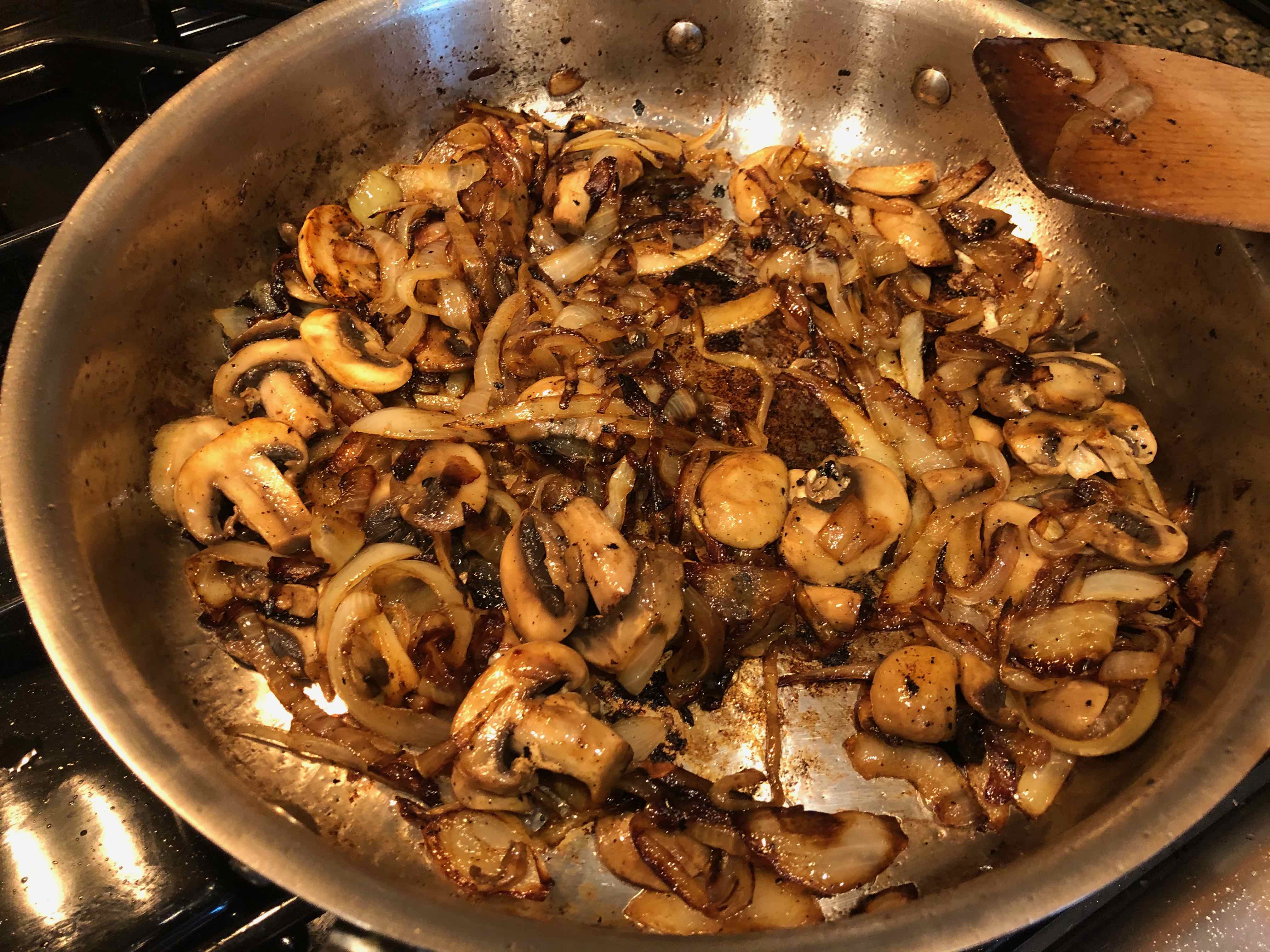 Fully browned onions and mushrooms