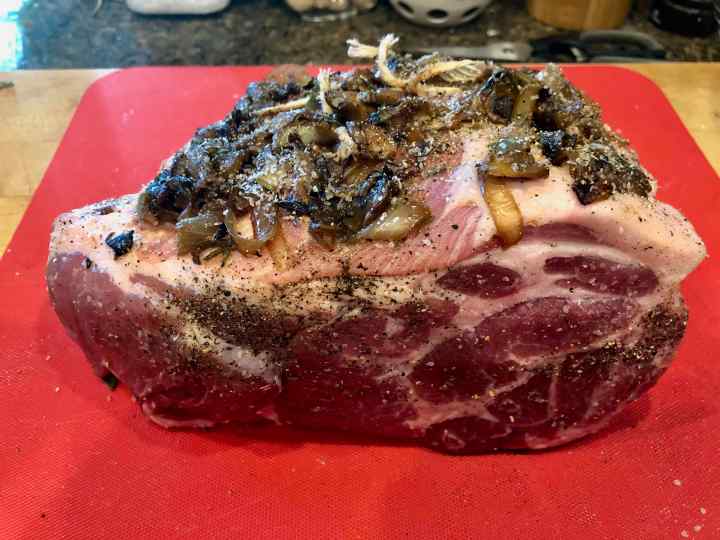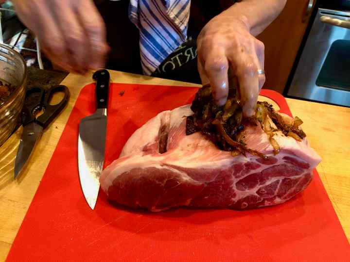Pork Shoulder Roast Stuffed with Apples & Onions