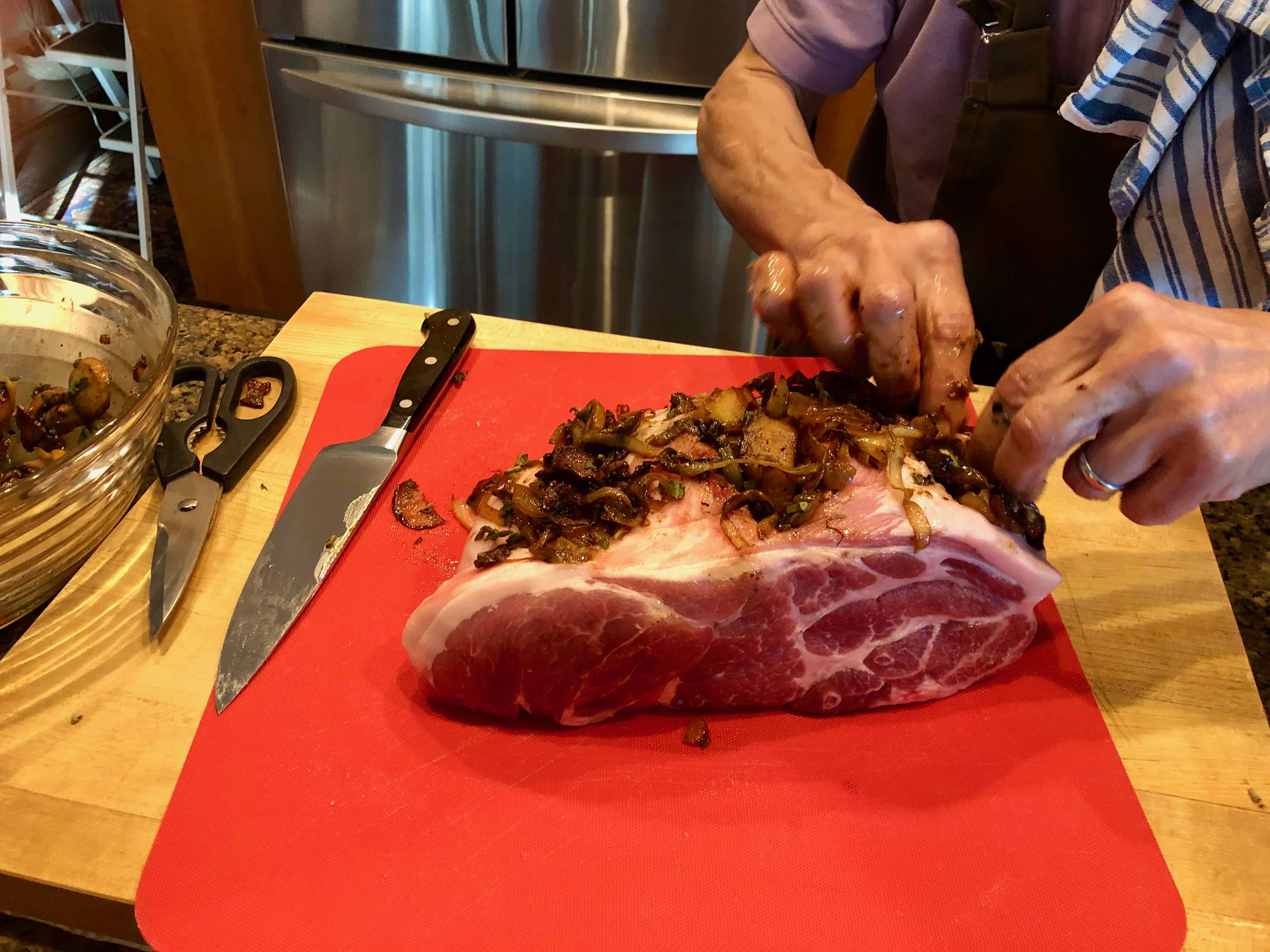 Continuing to stuff the roast