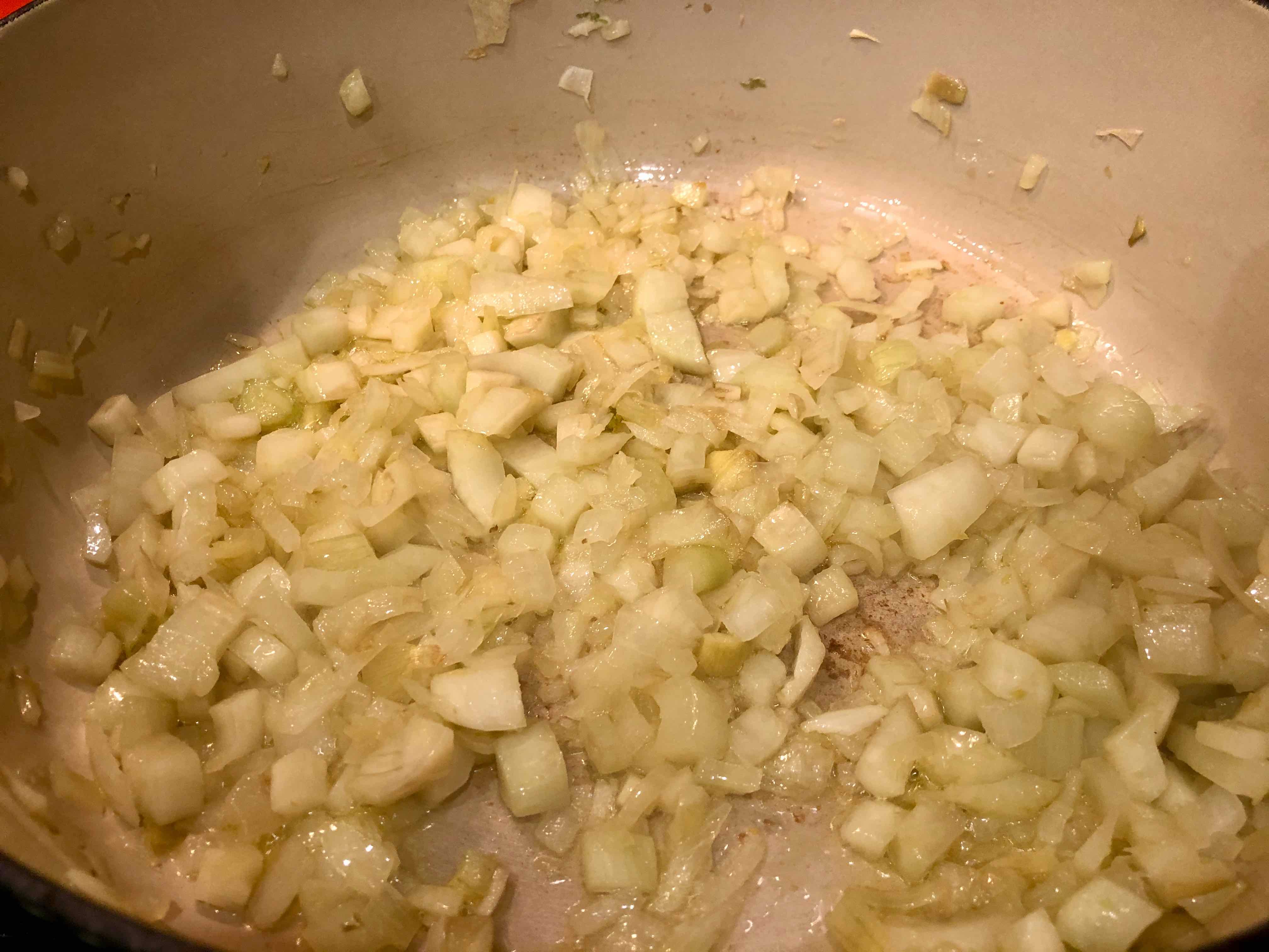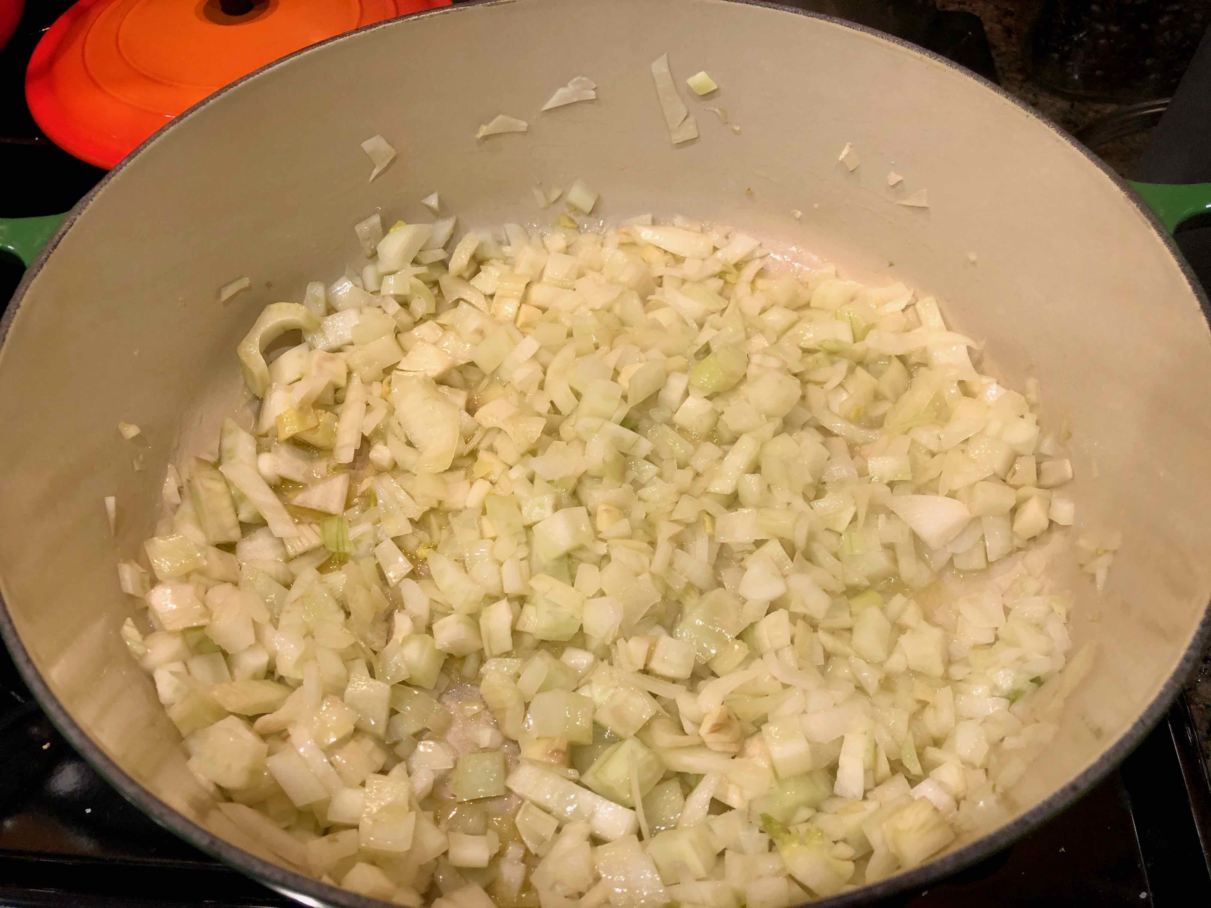 4. Add the onions and the fennel and sauté on medium heat, until tender, about 10 minutes.