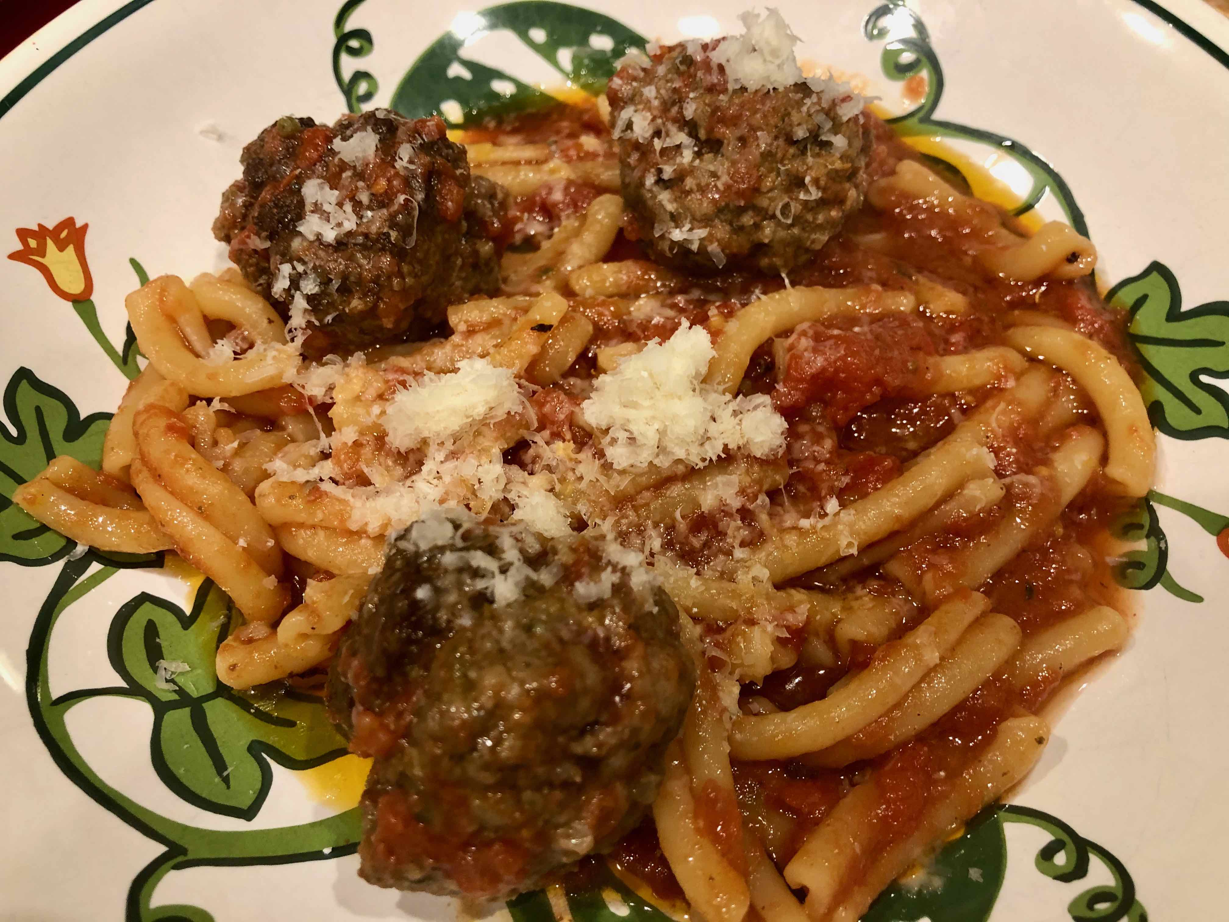 6. When done, serve the pasta accompanied by the meatballs and a generous sprinkling of the cheese.