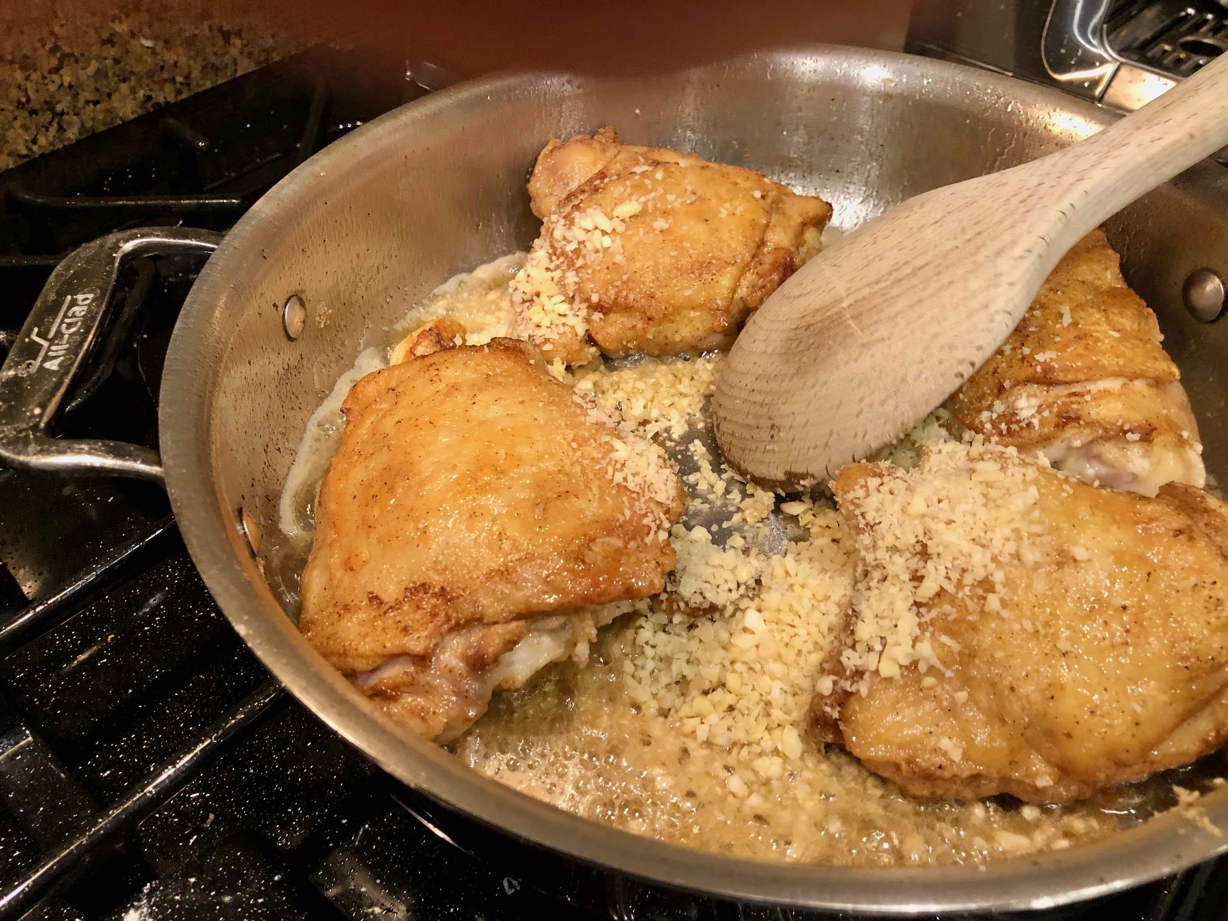 Ahead-of-time note: If you are serving the chicken for dinner, you can cook it through to the end that morning. Refrigerate and reheat gently in the same pan.