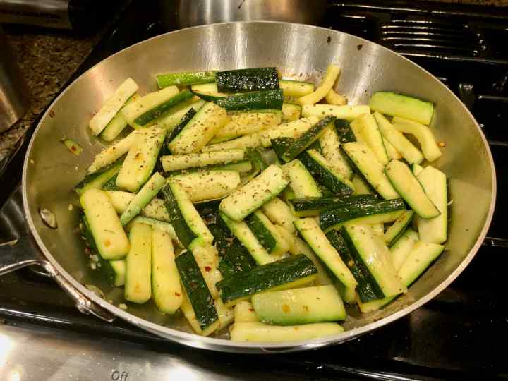 2. Cook until the zucchini begins to wilt but still has a little bite, about 4 minutes.