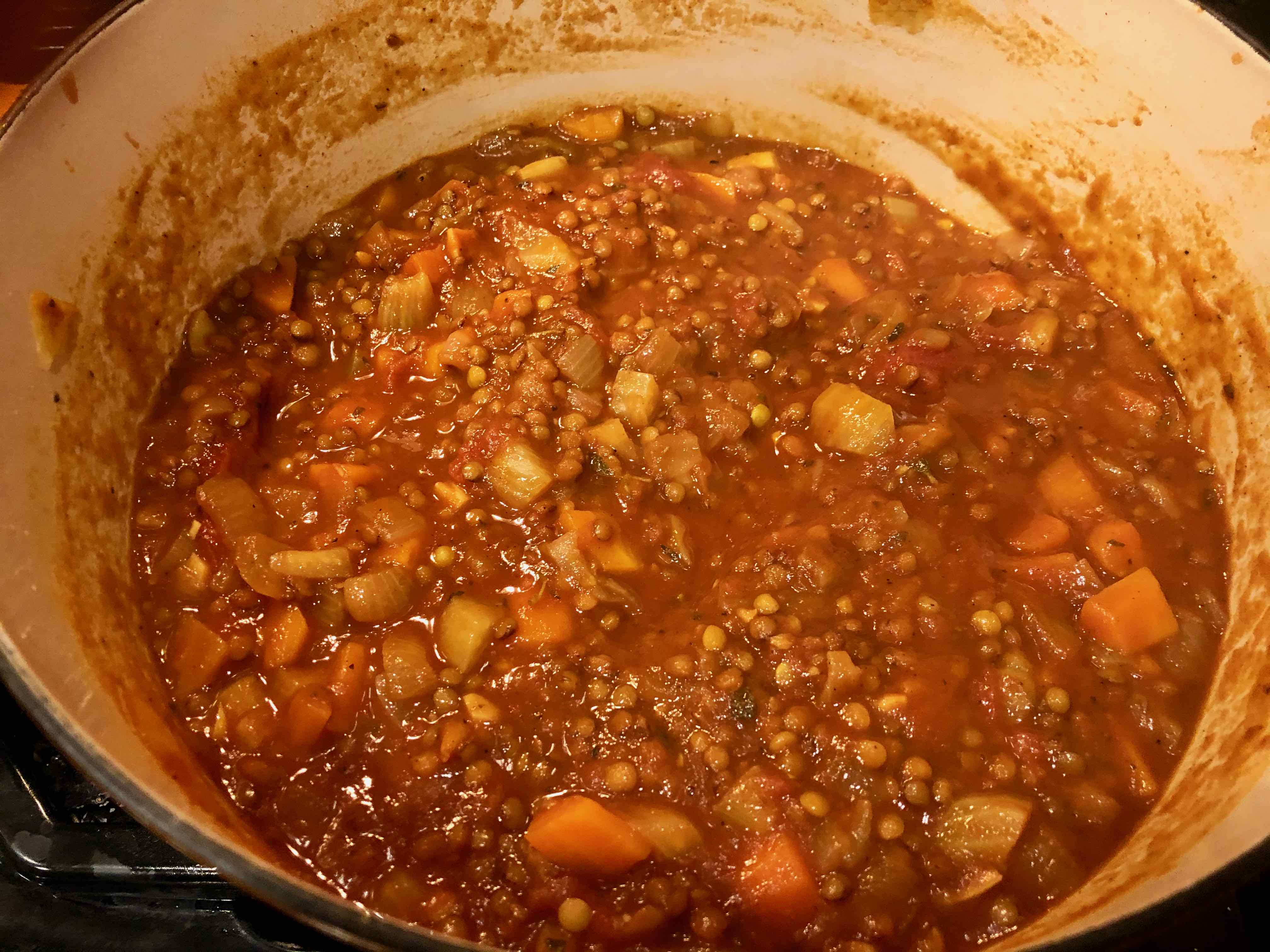 Stewed Lentils and Tomatoes (adapted from a recipe in Barefoot Contessa at Home by Ina Garten)