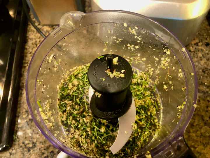 1. In a mini food processor, finely chop the garlic and rosemary petals together with plenty of black pepper.