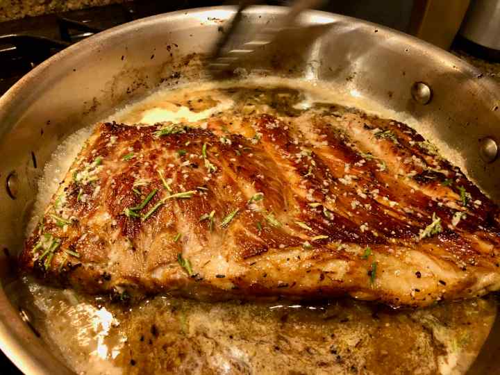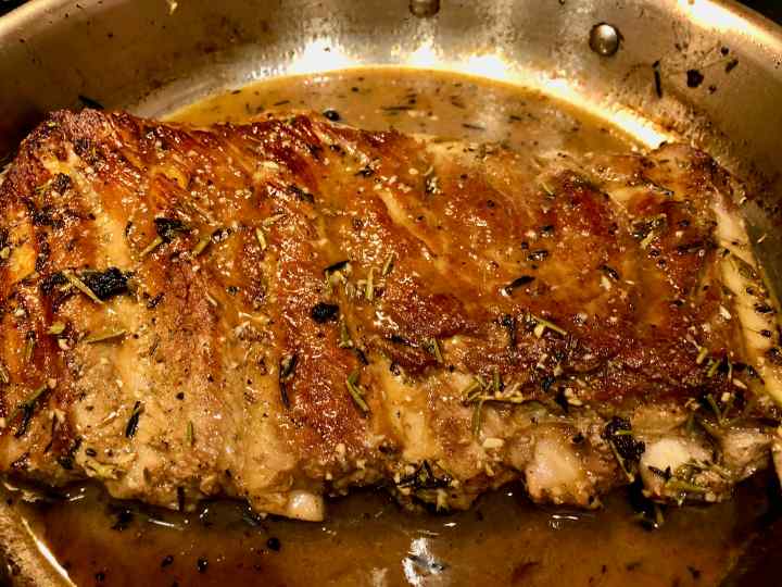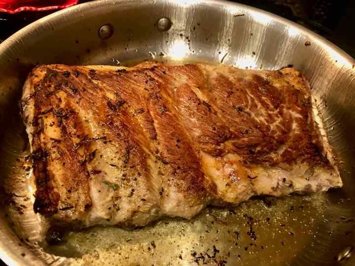 What initially attracted me to this dish was its use of so few ingredients: garlic, rosemary, white wine, along with olive oil, salt and black pepper. Minimal prep work and stress-free cooking also weighed in on my deciding to make it for a weeknight supper. The superlative results, however, more than confirmed my decision to prepare these ribs.