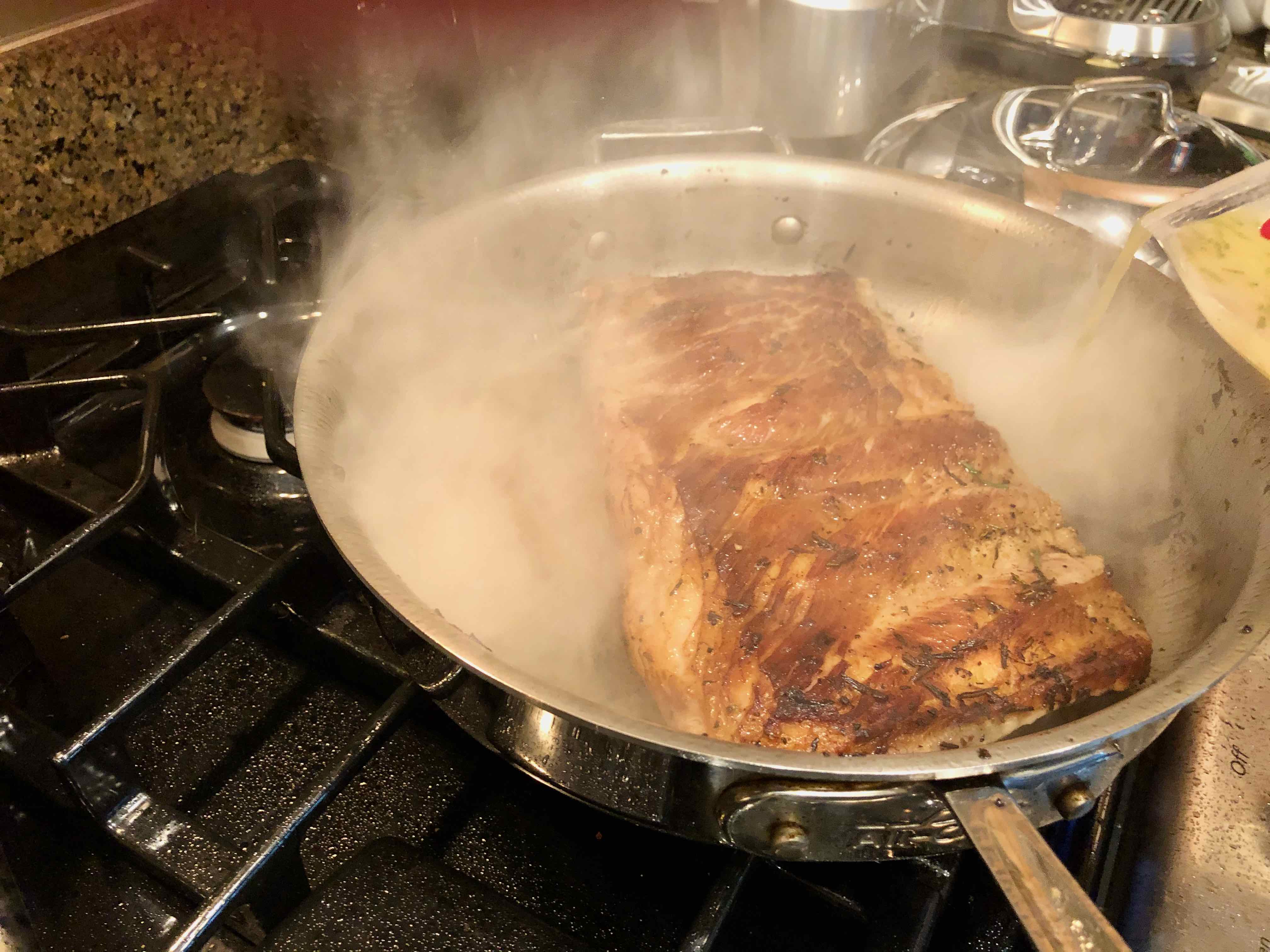 7. Cover the skillet, reduce the heat to low, and finish cooking, turning occasionally, until the pork is tender. (About 30 to 45 minutes.)