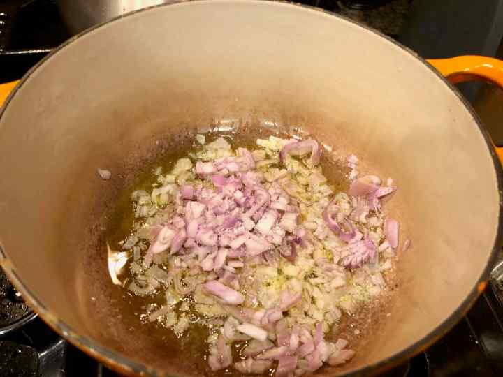 Adding the shallots