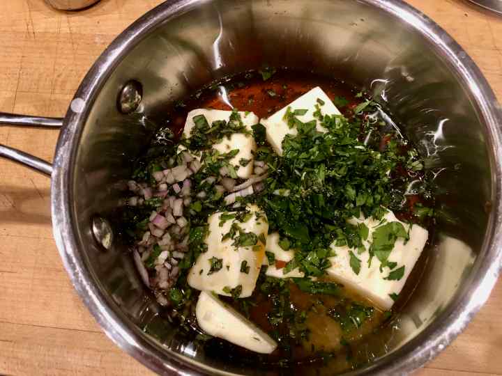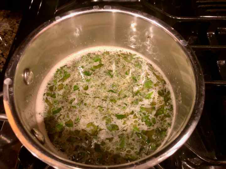 3. In a small sauce pan, combine the butter, lemon juice, sherry, and the remaining herbs. Over low heat, heat just until the butter melts, and then whisk to combine. Keep warm.