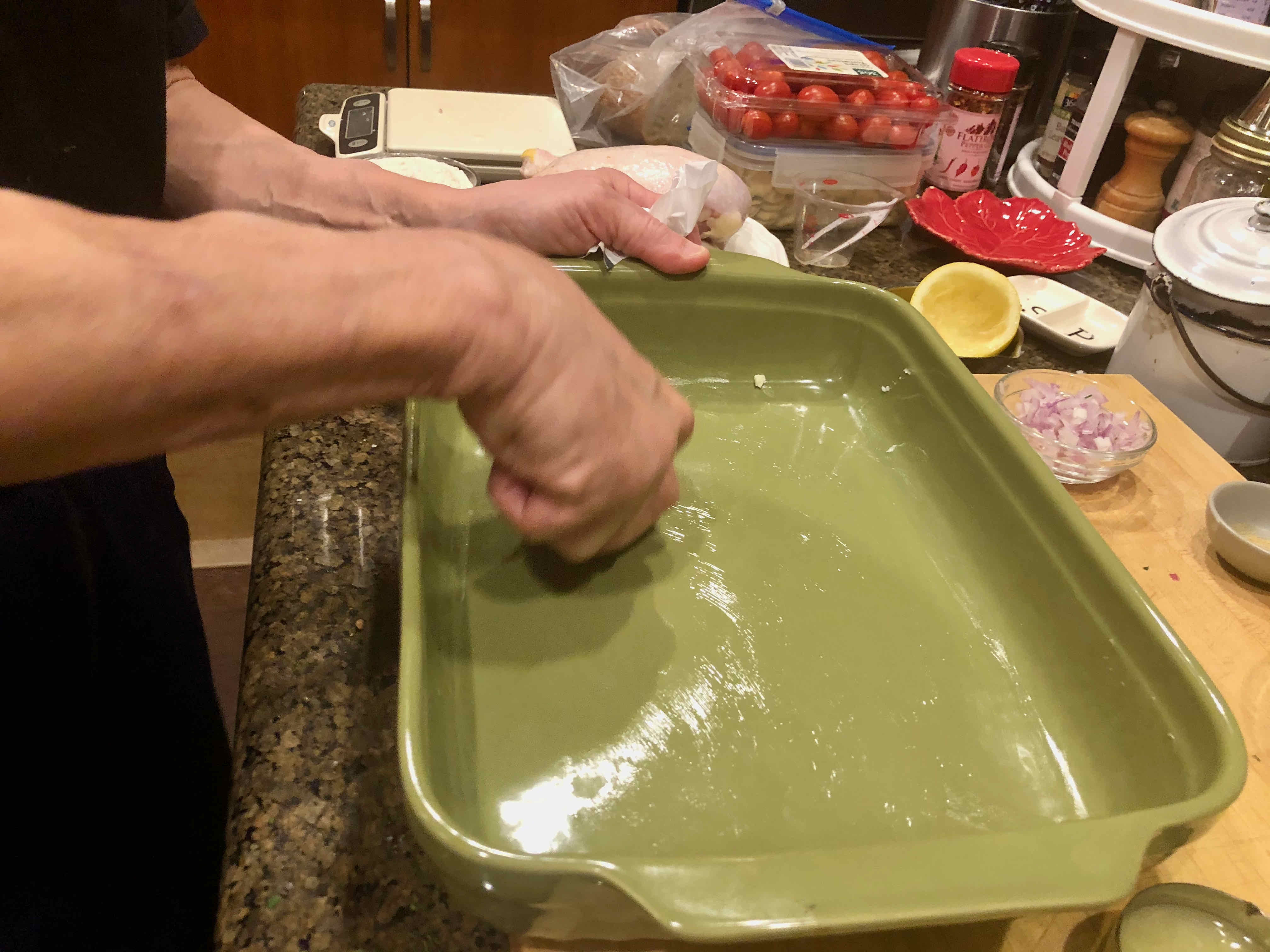 Buttering the dish