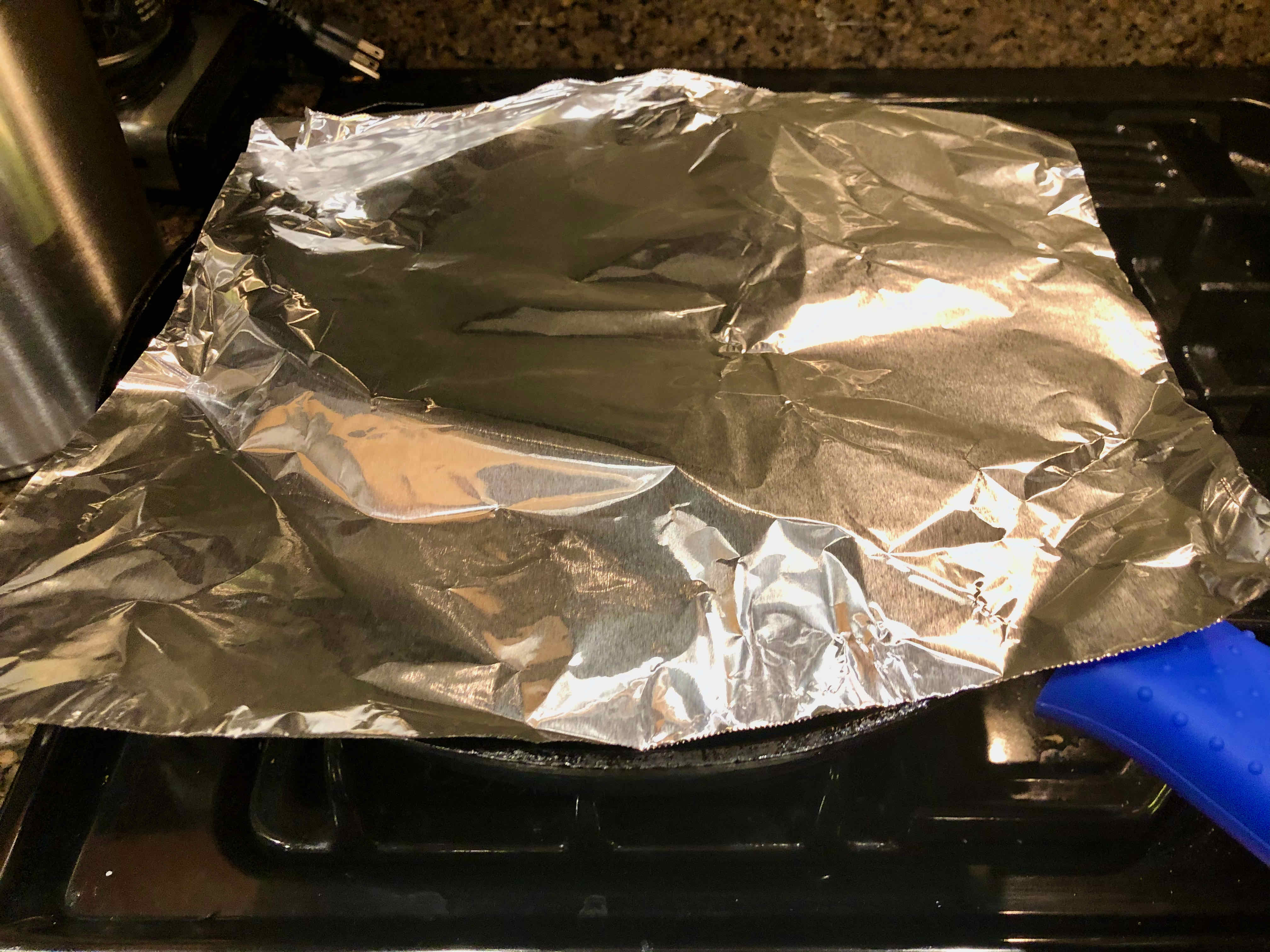 11. Cover the pan loosely with aluminum foil and allow the salmon to rest for 3 to 4 minutes for medium-rare or 5 minutes for medium. (I went with 4 minutes.)