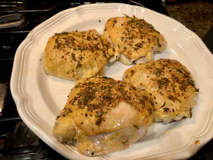 4 large bone-in, skin-on bone-in chicken thighs, trimmed of excess skin and fat