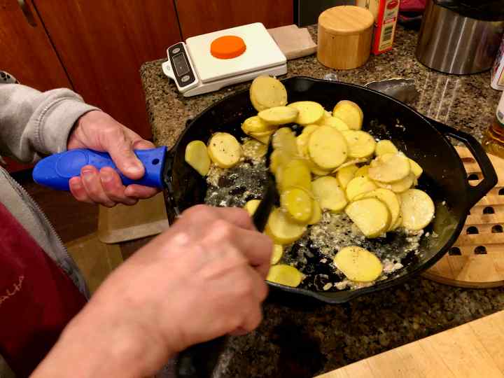Tossing the potatoes