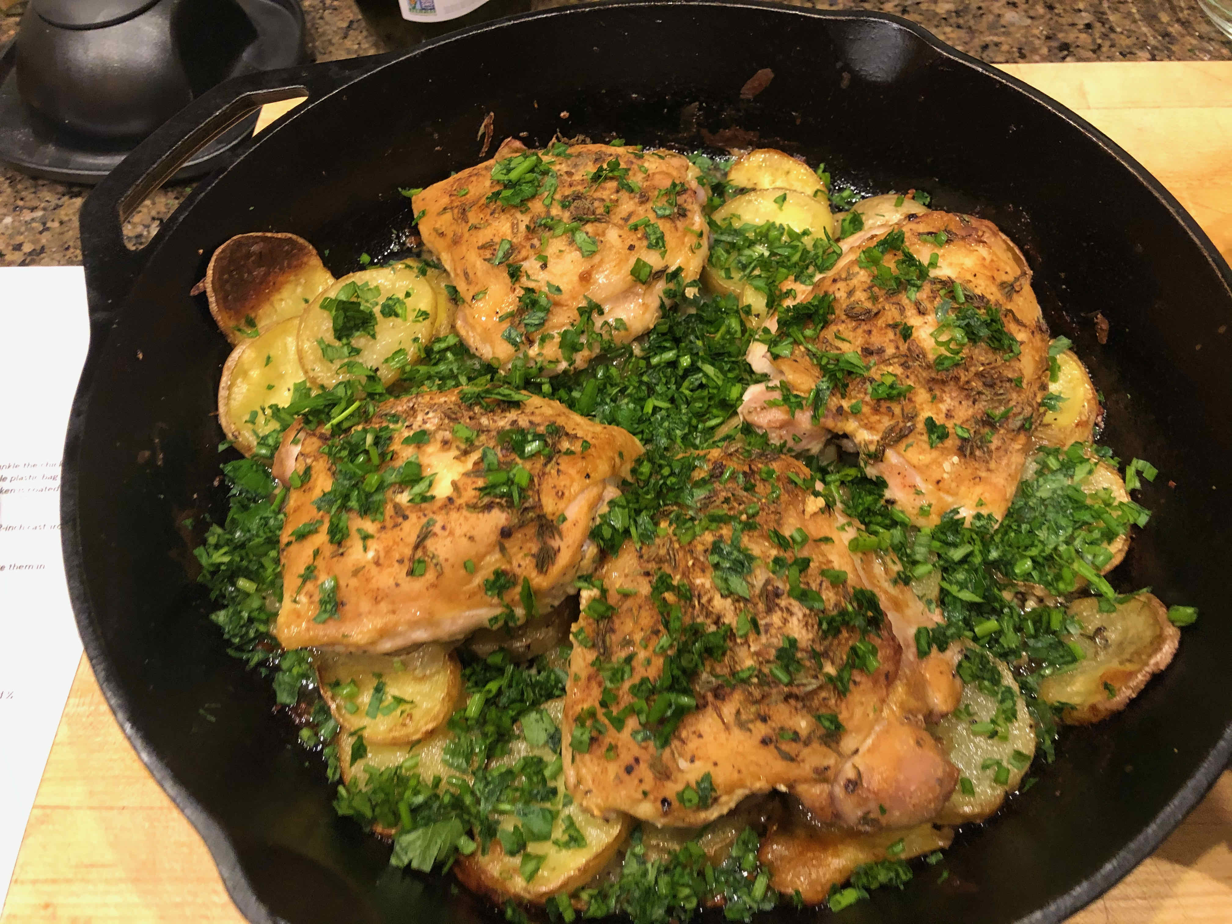 Skillet-Roasted Chicken and Potatoes (adapted from Modern Comfort Food by Ina Garten; an online version can be found here.)